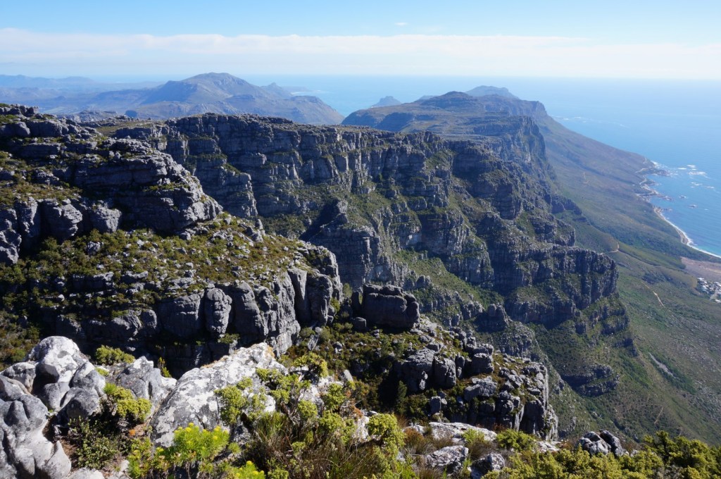 De afgeplatte bovenzijde van Table Mountain leent zich perfect voor (gemakkelijke) hikes met weinig hoogteverschil. Het landschap hierboven is dankzij z’n rotsachtige ondergrond en lage struikgewas alleszins behoorlijk bijzonder. Fabuleuze 360°-uitzichten zijn uiteraard inbegrepen. Wanneer we aan de zuidelijke zijde van het panoramische platform staan, valt op dat Table Mountain een stuk verder reikt dan je aanvankelijk denkt. Het gebergte strekt zich over een aanzienlijk deel van het Kaapse Schiereiland uit en dat garandeert monumentale uitzichten. De stranden van de helderblauwe Atlantische Oceaan maken het allemaal nog wat oogstrelender.
