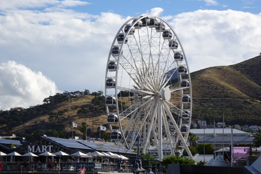 In de Britse hoofdstad hebben ze London Eye, Las Vegas heeft High Roller, Singapore pronkt met Singapore Flyer en in de Emiraten zijn ze apetrots op Ain Dubai. Kaapstad vond dat het niet kon achterblijven, maar helaas heeft het reuzenrad hier eerder bescheiden afmetingen. Het zogenaamde Cape Wheel is met z’n 40 meter immers allesbehalve een gigant. Bovendien lijkt het ons een beetje suf om een kaartje voor dit reuzenrad aan te schaffen, terwijl we daarstraks nog bovenop de Tafelberg stonden. Hebben we iets gemist? Ik vermoed van niet.