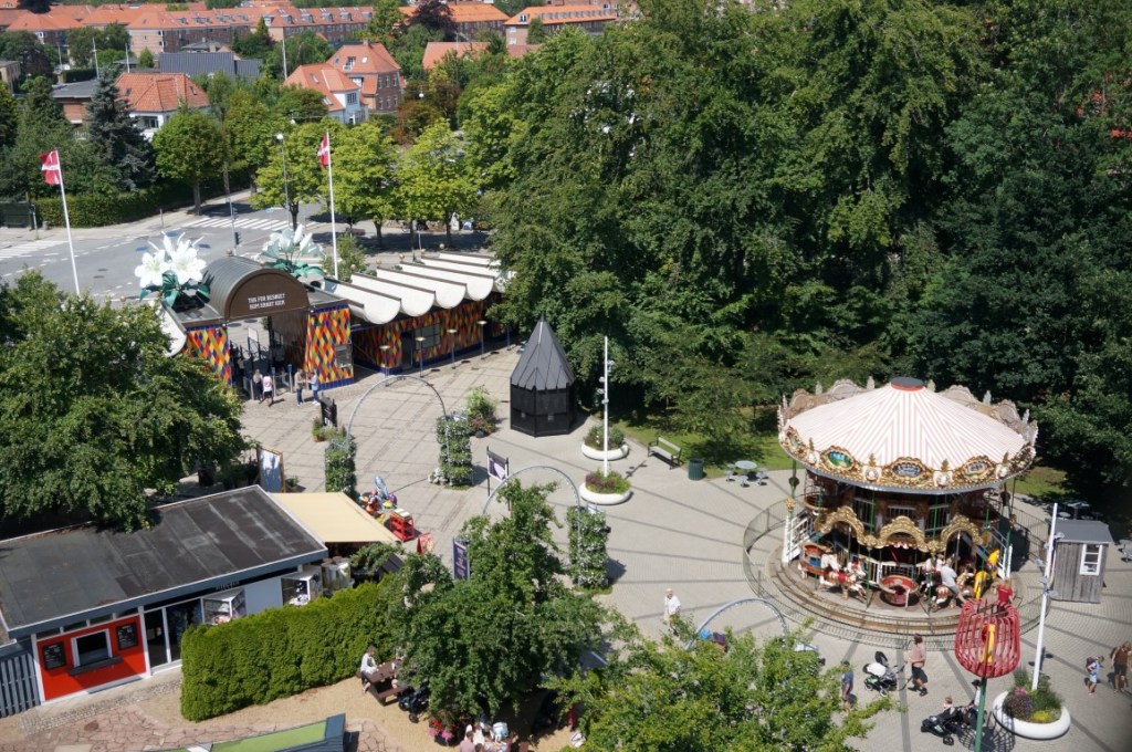 Het klinkt als een goedkoop marketingpraatje, maar Tivoli Friheden heeft letterlijk voor ieder wat wils. In de onmiddellijke nabijheid van de kinderachtbaan vonden we namelijk ook sensationelere attracties. Een opvallende verschijning is bijvoorbeeld Sommerfuglen, een zogenaamde Sky Racer van Gerstlauer. In deze molen kan je eigenhandig twee vleugels naast je zitje bedienen, waarna je gaat schommelen en mogelijks ook overkop gaat. In de Sky Fly-molens (die je bijvoorbeeld in Duinrell of Blackpool Pleasure Beach terugvindt) is dat goed haalbaar, maar bij deze vereenvoudigde variant bleek het iets minder vanzelfsprekend. Toch geïnteresseerd in inversies? Dan kan je terecht bij Himmelrum, een intense flat ride uit het gamma van Technical Park. Ik zag reeds een gelijkaardige attractie op de Antwerpse Sinksenfoor en besliste toen dat ik nooit zou plaatsnemen in een dergelijke kotsmachine. Ook in Tivoli Friheden bedankte ik dus vriendelijk, doch vastberaden.