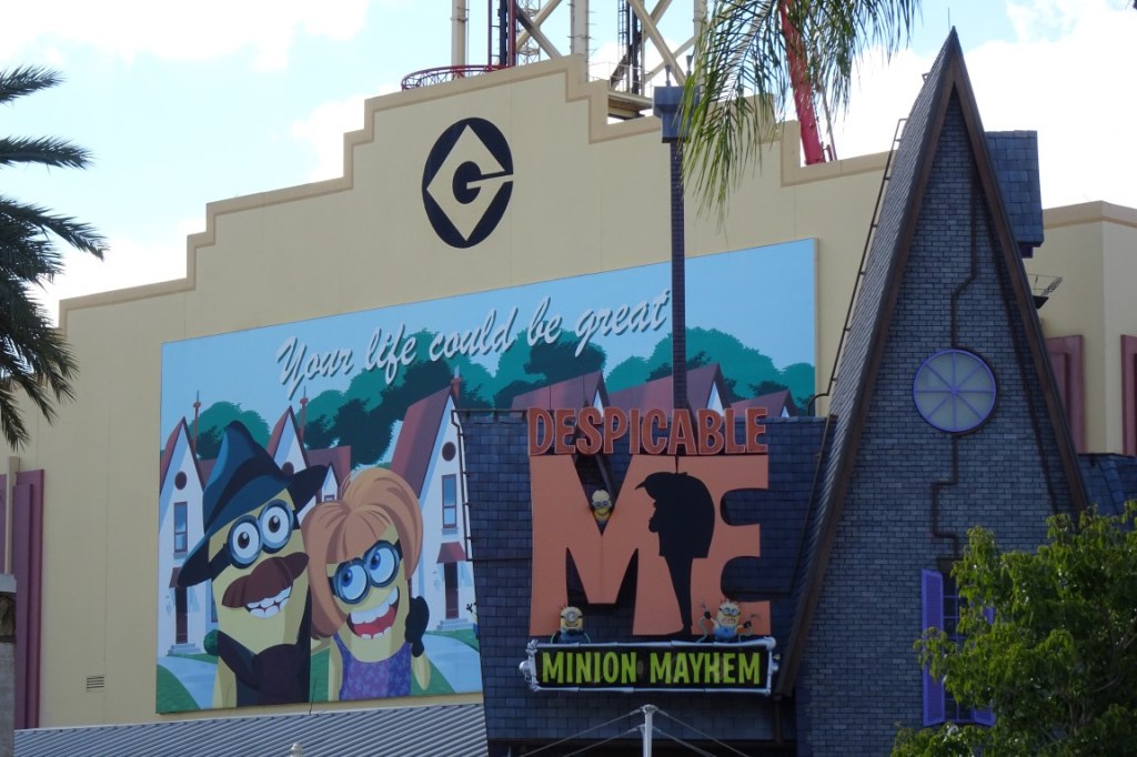Wie Universal zegt, zegt 3D-attracties. Universal wordt door de fan community wel eens een schermenpark genoemd en da’s absoluut terecht. Van zodra we het park betreden, zie ik immers al enkele rides waar 3D-brillen aan te pas komen. Toegegeven… een van die rides werd recent gesloten: Shrek 4D was vorig jaar voor het laatst operationeel en het gebouw wordt tegenwoordig omzoomd door bouwhekken. Men werkt momenteel immers aan een vervanger in het thema van de Minions. Dat wordt overigens de tweede Minion-attractie van Universal Studios, want aan de overzijde van de straat vinden we Despicable Me – Minion Mayhem. Deze simulator heeft een dunne verhaallijn, die gecombineerd wordt met een nogal bruut ritverloop. Verwacht geen diepgaande ervaring, maar dat hoeft ook niet. Als je de humor van de gelijknamige films kon appreciëren, dan is Minion Mayhem namelijk een uitstekende attractie. Wel oppassen voor lange wachttijden, want het ding is verrassend populair.