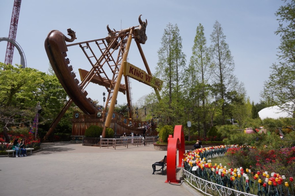 Fans van flat rides worden in Gyeongju World op hun wenken bediend. De Air Race en de Frisbee werden eerder al vernoemd, maar nabij Phaethon zien we ook een 70 meter hoge vrijevaltoren, een Afterburner en een (verrassend populair) schommelschip met de naam King Viking. Wij laten dit vallend, draaiend en zwaaiend plezier aan ons voorbij gaan, maar zulke attracties maken het parkaanbod wel opmerkelijk completer.