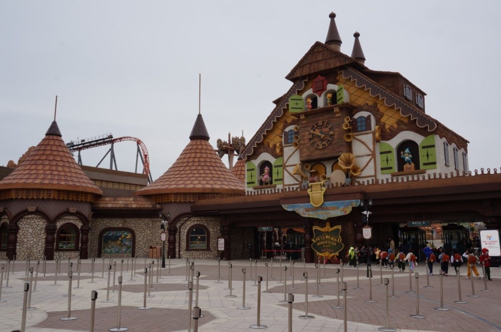We bezochten vandaag een gloednieuw pretpark en daar horen zowel voor- als nadelen bij. Het positieve nieuws: alle attracties en gebouwen zien er nog fantastisch uit. De ontwerpers van Lotte’s Magic Forest hebben een getraind oog voor detail en ze slagen erin om sfeervolle themagebieden neer te zetten. Voor zover ik kan zien, opteerde men bovendien voor kwalitatief hoogstaande materialen. Ik ga er dus van uit dat deze plek er over tien jaar nog minstens even mooi bij ligt. Op het vlak van entertainment laat men eveneens leuke dingen zien. Ondanks de regen zien we namelijk dat de shows in het openluchttheater gewoon doorgaan en ‘s middags vindt er zelfs een parade plaats. Het oogt allemaal wat kleinschaliger dan in Lotte World Seoul, maar dat stoort me niet.