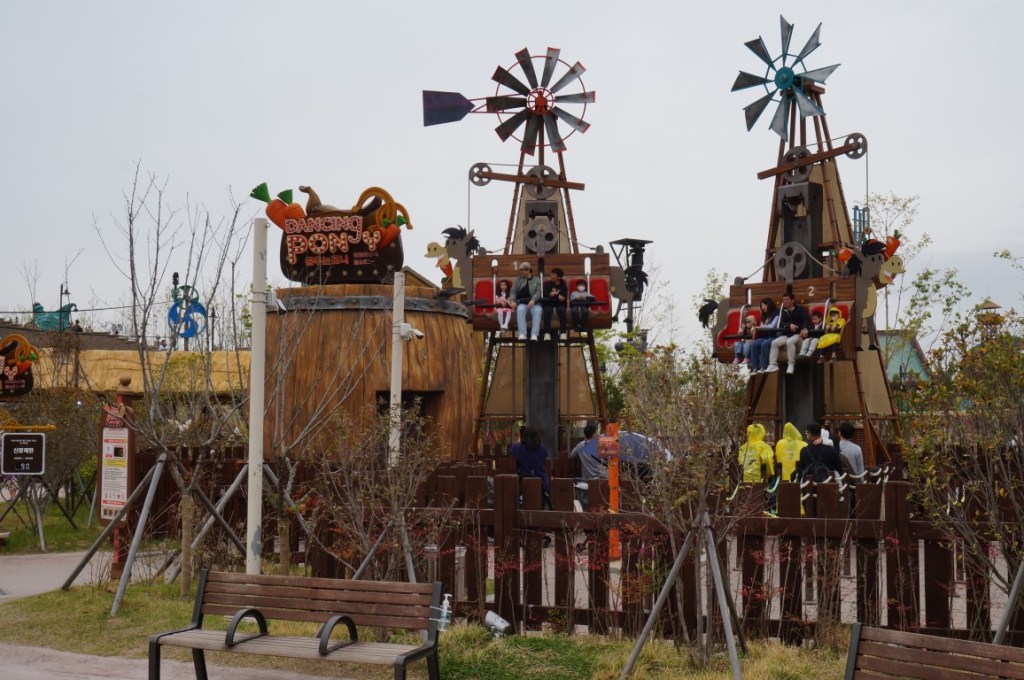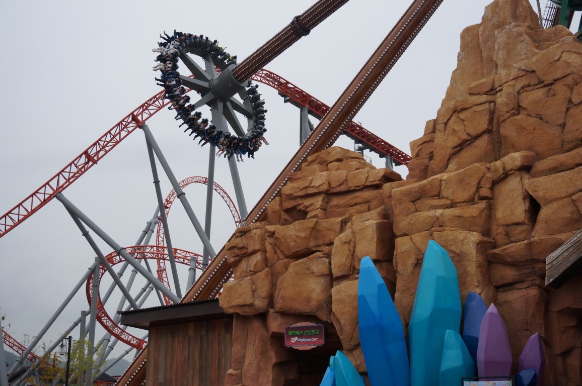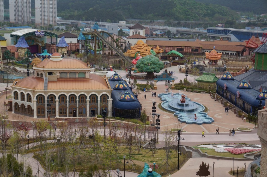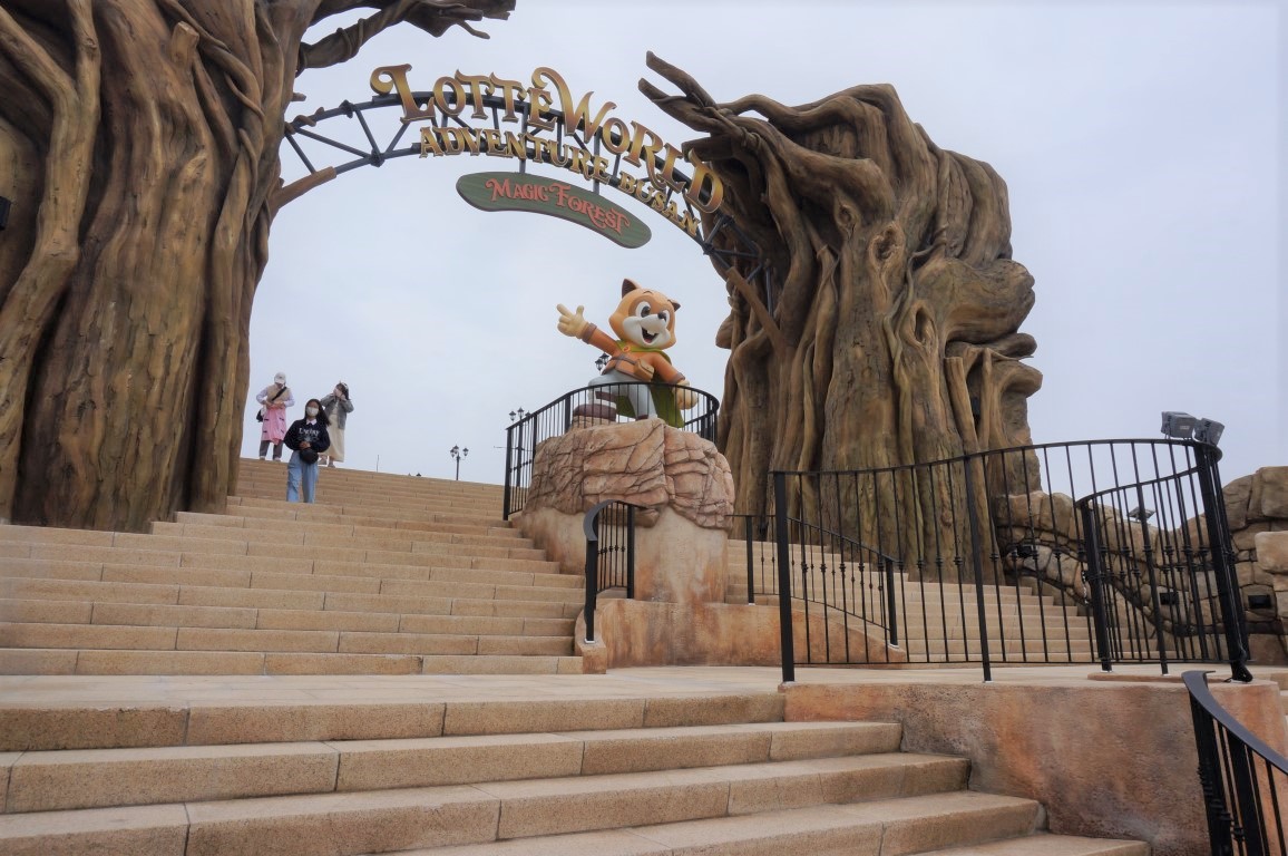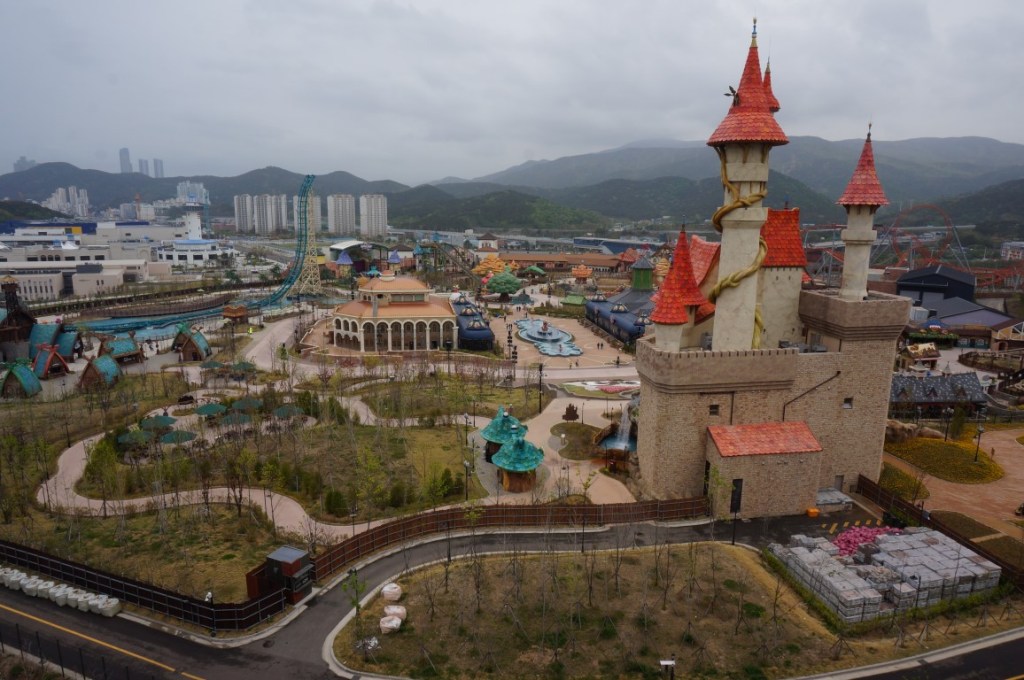 Een fotogenieke tempel en een familievriendelijke racebaan zijn tof, maar in eerste instantie kwamen we naar Osiria voor pretparkplezier. Daarvoor kunnen we rekenen op het Zuid-Koreaanse megabedrijf Lotte. Dit conglomeraat doet zowat alles wat een mens zich maar kan inbeelden. Ze zijn actief in uiteenlopende sectoren zoals vastgoed, financiën, chemie en voedingsproductie. Daarnaast is Lotte eveneens de uitbater van heel wat grote Koreaanse shoppingcentra en bioscoopzalen. Wij zijn echter vooral geïnteresseerd in de toeristische tak van het bedrijf, die verantwoordelijk is voor een resem hotels en twee themaparken. Het populairste park van dit duo is Lotte World in Seoul, maar anno 2022 opende er een tweede vestiging nabij Busan. Officieel is dit park gekend als Lotte World Adventure Busan – Magic Forest. Aangezien ik deze naam veel te lang vind, wil ik dat tijdens de rest van het report graag inkorten tot Lotte’s Magic Forest.