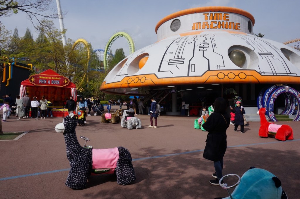 Net zoals bijna iedere pretparkfan heb ik vroeger vele uren, dagen, weken en maanden aan Roller Coaster Tycoon gespendeerd. Wanneer ik vandaag door SeoulLand wandel, krijg ik een flashback naar die tijd. Er staan bijvoorbeeld willekeurige decoratie-elementen op willekeurige plaatsen, en men plofte een hele resem flat rides random neer. Vooral in Fantasy Land staan er een groot aantal molentjes in hun standaard meegeleverde thema. Ik moet toegeven dat deze rides mooi onderhouden werden, maar het is jammer dat er geen overkoepelende visie achter hun aankleding zit. Verderop in Fantasy Land spotten we trouwens een verrassend populaire autoscooter, een monorail met trapvoertuigen en de zogenaamde Romantic Garden. Deze tuin bevat geen mechanische attracties, maar fungeert als een soort Instagram-locatie. Blijkbaar wordt dat ook geapprecieerd. De locals halen immers massaal hun camera’s boven bij het sprookjeskasteel en de kleurige bloemperkjes.