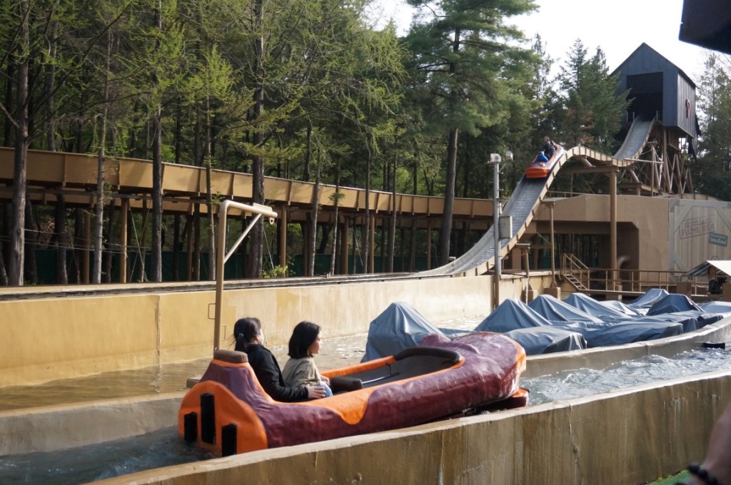 De grootste attractie van Adventure Land is Flume Ride, een klassieke boomstammenbaan. Het feit dat dit de enige waterattractie van SeoulLand is, weerspiegelt zich in de populariteit. Ondanks het eerder frisse weer staat er tijdens de namiddag immers een behoorlijke rij. Wat de wachtenden in ruil krijgen? Een vrij simpel uitziende log flume met amper één drop. Toch heeft deze ride een aantal fijne verrassingen in petto. Ten eerste is de lay-out relatief lang en werden er rondom het vaarkanaal enkele mooie rotsformaties opgetrokken. Ten tweede levert de afdaling meer sensatie dan ik verwachtte. Dit is namelijk een double drop met een stevig shotje airtime. Het feit dat we de daarop volgende splash droog overleven, bekijk ik persoonlijk overigens als een pluspunt.