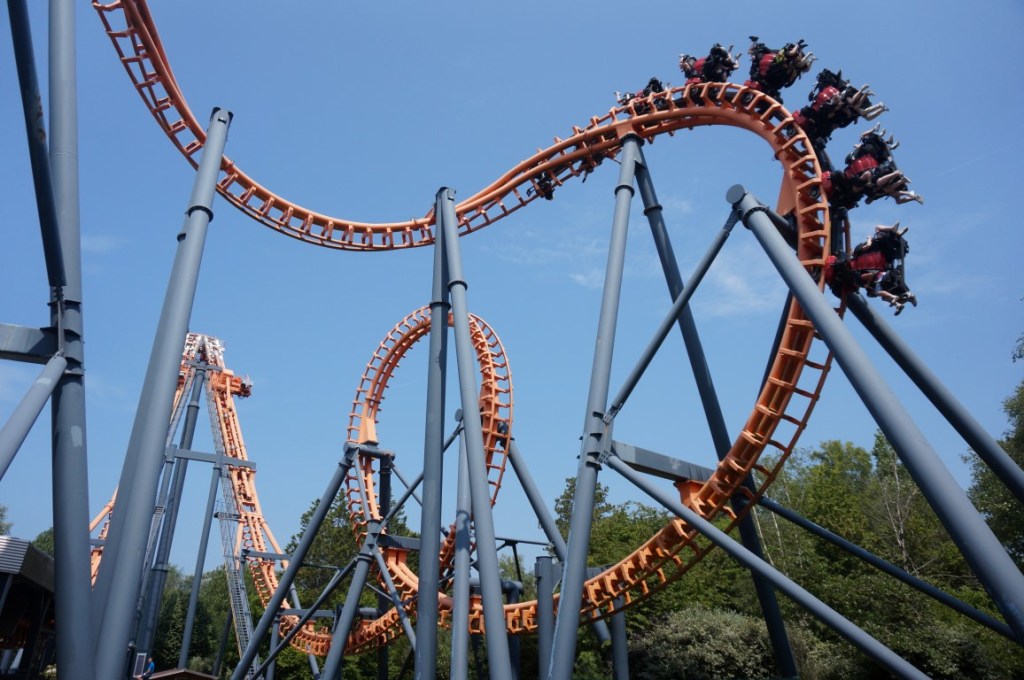 Parc Bagatelle focust overduidelijk op gezinnen met jonge kinderen. Toch wordt ook de iets oudere, naar sensatie zoekende jeugd niet vergeten. Ze kunnen terecht bij de eerder genoemde Silver Wings en bij het schommelschip, dat prachtig aan de rand van een meer geplaatst werd. De eyecatcher in het thrill-segment is echter sowieso Triops. De première van deze baan vond ooit plaats in Liseberg, waarna hij via Griekse en Deense tussenstops in Parc Bagatelle belandde. We spreken in dit geval over een Invertigo van Vekoma en dat blijkt best een indrukwekkend apparaat. Het ding is 40 meter hoog, bereikt een topsnelheid van 80 kilometer per uur en vooral de hoge g-krachten zijn berucht. Maar ondanks het feit dat de baan op zichzelf imposant is, blijkt het qua aankleding een gemiste kans. De wachtruimte en het stationnetje ogen doodsimpel en de baan staat bovendien in een afgelegen uithoek van het park. Ik wil Bagatelle dus aanmoedigen om Triops wat meer liefde te tonen, want het contrast met de overige attracties is (in negatieve zin) opvallend.