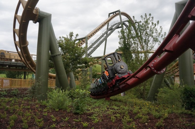Erlebnispark Tripsdrill is korpulente Freunde (dikke vriendjes) met Gerstlauer. Deze Beierse constructeur leverde niet alleen Höhenflug en G’Sengte Sau, maar in 2013 werd het bedrijf ook ingeschakeld voor Karacho. Karacho was vanaf dat moment de meest sensationele achtbaan van Tripsdrill: een pijlsnelle lancering en vier inversies verwachtte je nu eenmaal niet in dit kneuterige familiepark. Toch is er duidelijk vraag naar, want Karacho blijkt populair. We schuiven ongeveer een kwartier aan en nemen front seat plaats… om vervolgens aangenaam verrast te worden. Inversiebanen van Gerstlauer hebben soms rare knikken en een onnatuurlijk aanvoelende flow, maar dat is bij Karacho niet het geval. De lancering is krachtig, de lay-out onvoorspelbaar en de trein bolt met een heerlijke souplesse over de rails. Wanneer je als park daarbij een sfeervol stationsgebouw en een kotsende animatronic voorziet, heb je mij helemaal overtuigd. Karacho… goed zo!