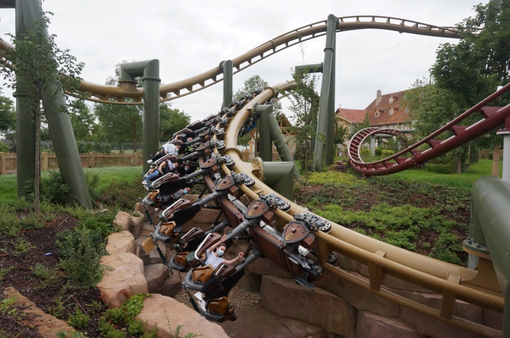 Tripsdrill presenteerde in 2020 niet enkel een nieuwigheid voor de fans van Nervelkitzel, maar men bouwde ook een neue Familienachterbahn. Volldampf is z’n naam en hij kronkelt dwars door de lay-out van Hals-über-Kopf. Deze Family Boomerang van Vekoma voelt aan zoals de meeste van zijn soortgenoten. Ik loop niet warm voor deze banen, maar het beoogde doelpubliek kan ze doorgaans wel smaken. Ik gun Volldampf trouwens wel lof voor z’n briljante near-misses met Hals-über-Kopf en de decoratie. Het treintje ziet er geweldig uit, het station is schitterend vormgegeven en het bijpassende liedje evenaart moeiteloos de catchiness van It’s a Small World en Carnaval Festival.