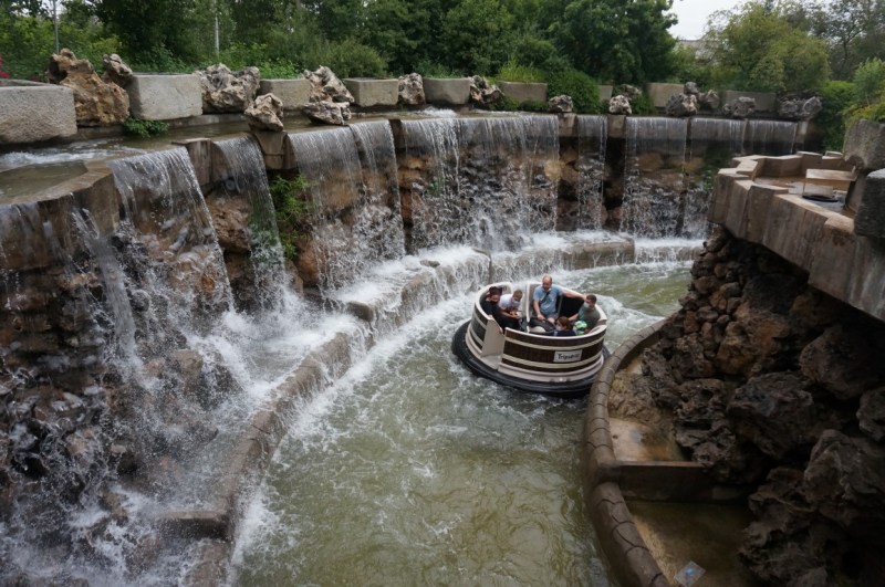 Als die kotsende animatronic toevallig zijn maaginhoud over jouw stralend witte T-shirt gooit, is er slechts één oplossing: de wasserij opzoeken. Die wasserij ligt gelukkig achter de hoek. Volg gewoon de pijltjes richting Waschzuber-Rafting en je komt terecht in de wondere wereld van wasmachines en zeepbellen. Dit is het zoveelste briljante decoratie-idee van Tripsdrill en men gebruikte het bij de rapid river. Ik kan het originele wasserette-thema alleen maar toejuichen en de wachtruimte is (net zoals bij de andere topattracties van Tripsdrill) wederom wondermooi. Helaas zijn de excellente landscaping en het ongewone thema meteen ook de grootste blikvangers van Waschzuber-Rafting. Qua rit maakt deze rapid river namelijk een eerder matige indruk. Ik wil niet beweren dat het een traag kabbelend beekje is, maar de rit kon gerust wat extra sensatie gebruiken.