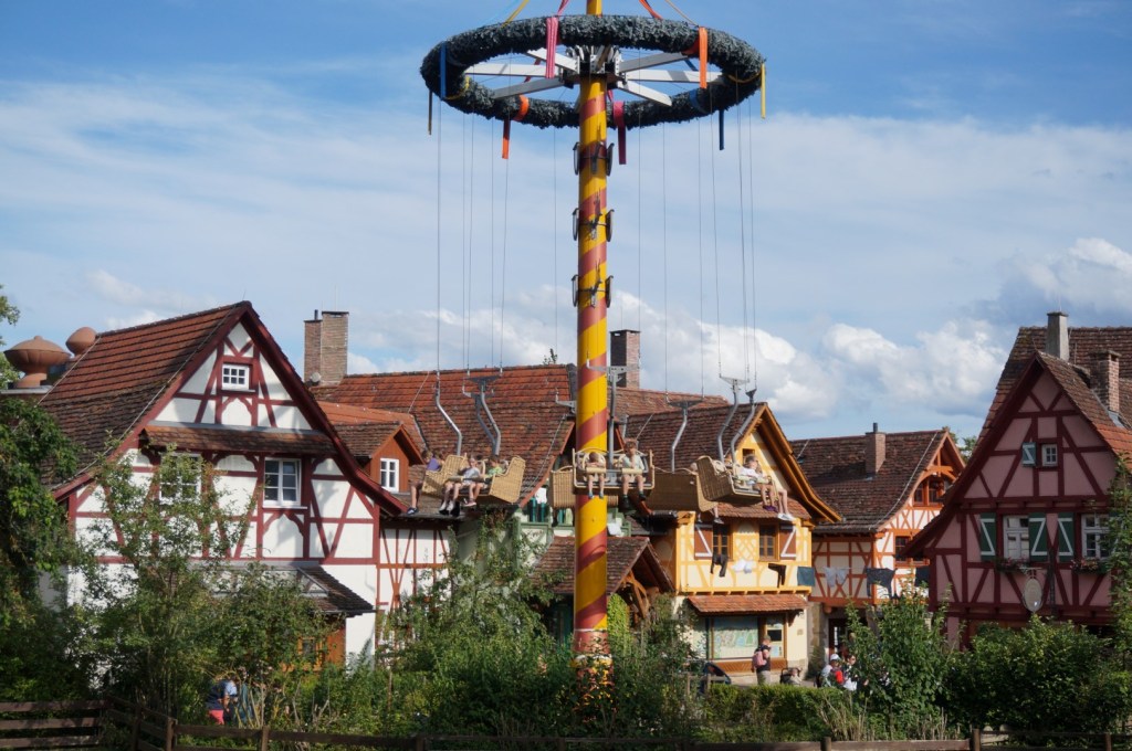 In Tripsdrill is alles Duitser dan Duits. Achter de ingang ligt dus geen Main Street, maar een Dorfstraße. Aan het uiteinde van die Dorfstraße ligt dan weer geen kasteel, maar een Maibaum. Het is allemaal zo leuk, zo gedetailleerd en zo koddig dat je dit park al na vijf stappen voor eeuwig in je hart sluit. Net om de hoek vinden we trouwens de Altweibermühle. Deze nostalgische windmolen staat er sinds 1929 en hij herbergt de oudste attractie van het park. Binnenin vind je namelijk een glijbaan met juten matjes. Mag ik aanraden om je schrap te zetten voor de eerste bocht? Ik hield er vorige keer namelijk een pijnlijke schaafwonde aan over. Vlakbij deze oudewijvenmolen vind je trouwens ook de Altmännermühle, een hindernissenparcours dat zich deels indoor en deels in openlucht bevindt. De Altweibermühle en de Altmännermühle zijn uiteraard niet de attracties waarvoor we vijf uur in de wagen kropen, maar ze maken ons dagje Tripsdrill wel completer.
