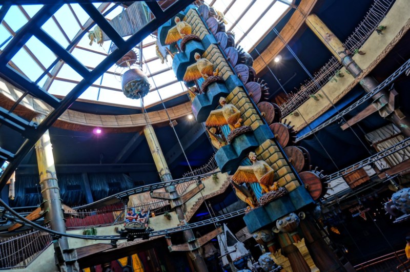 Phantasialand heeft een heleboel rides van wereldniveau, maar die staan duidelijk niet in de themawereld Fantasy. We zoeken dus verder in het aangrenzende Berlijn, dat gedomineerd wordt door de imposante Kaiserplatz. Op dat plein vinden we de ingang van Maus au Chocolat, een darkride uit het jaar 2011. Het ritsysteem is gebaseerd op Toy Story Mania in de Disney-parken, maar het thema verschilt uiteraard drastisch. In deze attractie ontdekken we een taartenbakkerij die aangevallen wordt door een muizenkolonie. Met behulp van spuitzakken vol chocolade moeten bezoekers deze muizen liquideren. Da’s best tof… tijdens de eerste drie scènes. Hoewel Maus au Chocolat veel lof verdient voor het originele thema, duurt de attractie me namelijk te lang. Toy Story Mania blijft boeien dankzij z’n wisselende games, maar hier in Phantasialand speel je zeven keer hetzelfde spelletje. Het is daardoor heus geen slechte attractie, maar de herhalingswaarde ligt tamelijk laag.