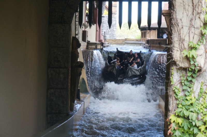 Klugheim is een onderdeel van het parkgedeelte Mystery, waar ook River Quest en Mystery Castle toe behoren. Ik moet toegeven dat onze interesse in beide attracties klein is. We slaan ze vandaag dus, om uiteenlopende redenen, over. Bij River Quest vormt vooral de natheid een excuus om te skippen. Ik heb er tijdens zo’n warme dag heus geen probleem mee om een beetje nat te worden. Toch weet ik uit ondervinding dat je bij River Quest soms hele emmers water in je schoot gekieperd krijgt. Nein danke, zeg ik dan. Mystery Castle schrappen we dan weer van de planning omdat hij een groot deel van de dag in storing ligt én omdat we torenattracties sowieso niet als must-do’s beschouwen. Tijdens vorige bezoekjes ervoer ik de duistere sfeer in de wachtruimte als erg geslaagd, maar puur qua rit doet Mystery Castle me niet veel.