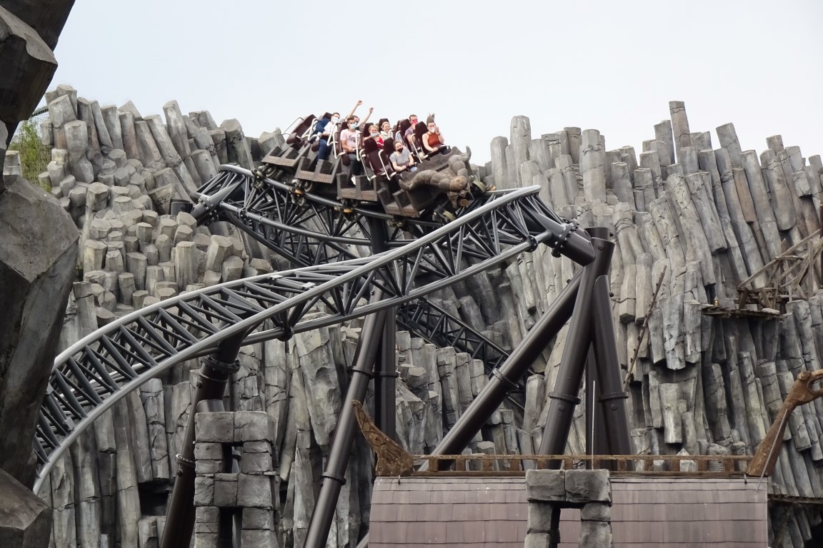 Chiapas is fantastisch, maar het is niet mijn nummer één in Phantasialand. Die eer is weggelegd voor Taron, een legendarische achtbaan die doorheen het middeleeuwse dorp Klugheim slingert. Hij staat er inmiddels al een hele tijd, maar z’n populariteit blijft immens. Er ontstaan dus vaak lange rijen en een groot deel van de wachttijd breng je door in een ongezellige zigzag-wachtruimte. Toch valt er vandaag niks te klagen, want we mogen al na een dertigtal minuten instappen. En wanneer we vervolgens een Intamin-beugel in onze schoot duwen, zijn we helemaal klaar voor een rit op een van ‘s werelds beste achtbanen. Wat deze coaster zo briljant maakt, is zijn optimale opbouw. De eerste lancering en het daarop volgende achtbaangedeelte zijn prima, al gebeuren er geen wereldschokkende dingen. Maar wanneer onze trein in de catacomben van Klugheim een tweede maal accelereert, wordt Taron een ervaring van topniveau. Als je het gillende geluid van die tweede launch hoort, weet je dat er pure thrill komt. De zigzaggende afdaling is heerlijk, er volgt een intense overbanked turn en ook de aansluitende richtingswissels zijn geniaal. Wanneer we even later de eindremmen bereiken, kan ik maar één ding concluderen: ik wil dit nog eens doen. En nog eens. En nog eens.