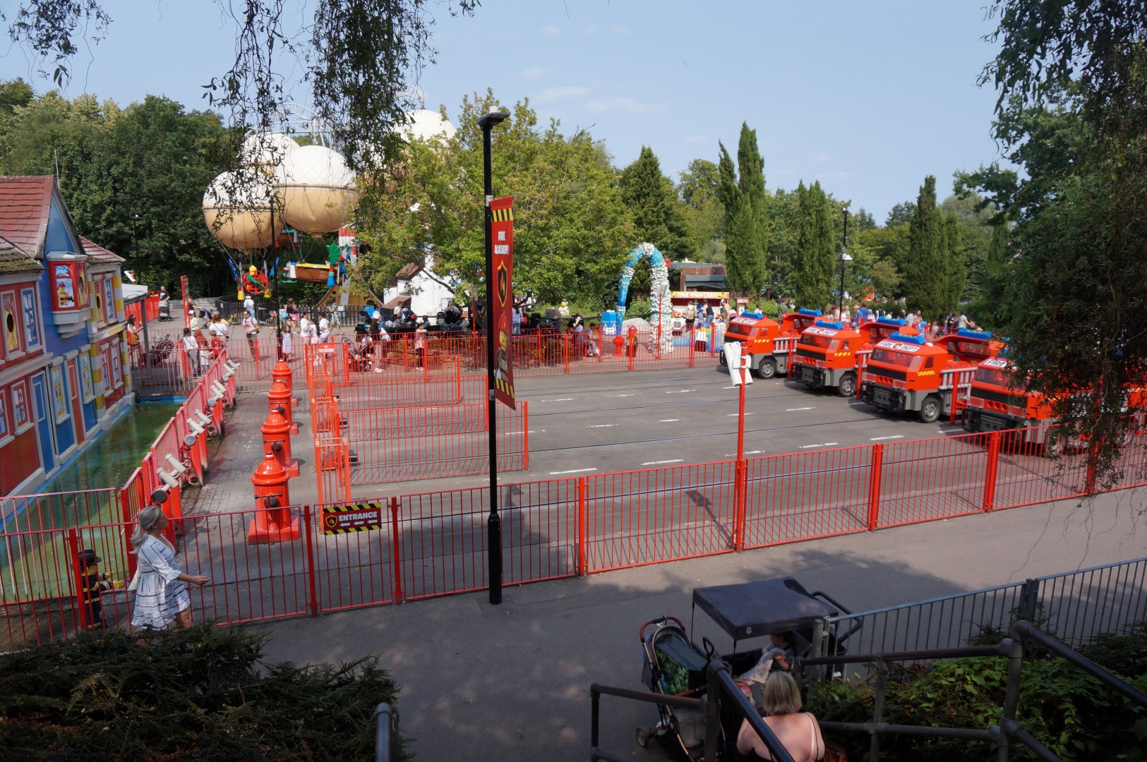 Van een gigantische minifig naar gigantische Lego-blokjes… oftewel Duplo. Duplo Playtown is er voor de jongste bezoekers en bestaat onder meer uit speeltoestellen, waterglijbanen en een schattige treinrit. Daar zijn we allemaal veel te oud voor, al nemen we wel een kijkje bij Duplo Dino Coaster. Deze kinderachtbaan zou namelijk een mooie +1 voor onze coaster counter kunnen opleveren. Helaas blijkt dat de baan met een storing kampt. Het is jammer dat we de credit moeten missen, maar ik ben ervan overtuigd dat we geen waanzinnige ervaring mislopen. Dino Coaster is met z’n hoogteverschil van drie meter en totale tracklengte van 67 meter namelijk een van de kleinste achtbanen van het Verenigd Koninkrijk. Een identieke baan is trouwens te vinden in Europa-Park, waar hij z’n rondjes draait onder de naam Ba-a-a Express.