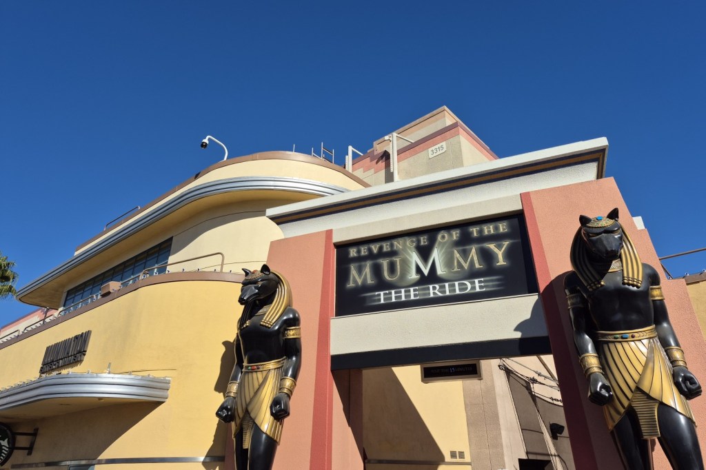Ook Revenge of the Mummy – The Ride is een klassieker in de Universal-parken. En hoewel het idee achter deze overdekte achtbaan telkens gelijkaardig is, zijn er duidelijke verschillen merkbaar. In Orlando vind je de attractie bijvoorbeeld in het fictieve Museum of Antiquities, terwijl er in Singapore voor een monumentale Egyptische tempelfaçade gekozen werd. Bij de Californische versie blijkt het exterieur minder noemenswaardig. De baan bevindt zich immers in een nauwelijks gethematiseerde soundstage en de toegangspoort oogt tamelijk kleinschalig. Helaas is ook de eigenlijke attractie een beetje minder imposant dan z’n broertjes. De inleidende darkride is korter en bevat minder animatronics en effecten, terwijl het achtbaangedeelte eerder mak aanvoelt. Het achterwaartse gedeelte is hier weliswaar langer dan bij de naamgenoten, maar ik ervaar dat niet als een grote meerwaarde. Ten slotte ben ik niet helemaal ondersteboven van het themaniveau. Net zoals dat bij de andere versies het geval is, word je tijdens de rit namelijk vaak geconfronteerd met beschilderde 2D-borden waarop een stroboscoopje gericht werd. Het heeft allemaal een vrij goedkope uitstraling, en dat zou bij een miljardenbedrijf als Universal eigenlijk niet mogen.