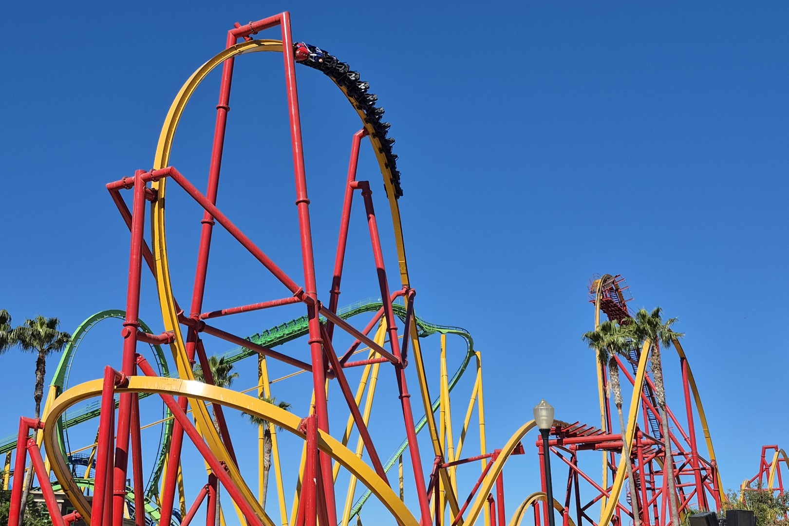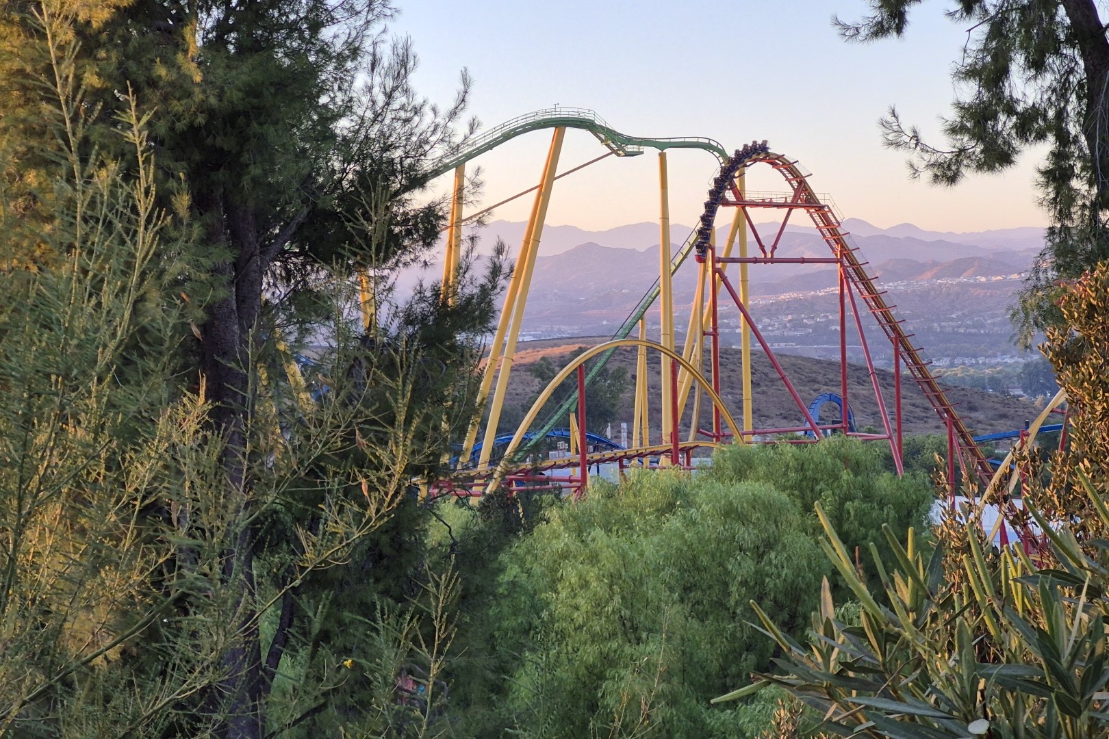 Welkom in Six Flags Magic Mountain, een plaats die zichzelf dankzij z’n zeventien kilometer achtbaanrails, twintig lifthills en 43 inversies met recht en reden de thrill-hoofdstad van de Amerikaanse westkust mag noemen. Het in 1971 geopende park speelt niet alleen een hoofdrol in de natte dromen van menig coasterfan, maar verschijnt ook in films, videoclips en televisieseries. We kunnen dus wel stellen dat Six Flags Magic Mountain een iconische plek is die je als pretparkliefhebber ooit bezocht moet hebben. Stel je navigatiesysteem alvast in op Santa Clarita, een stad die zowat zestig kilometer ten noordwesten van Los Angeles ligt.