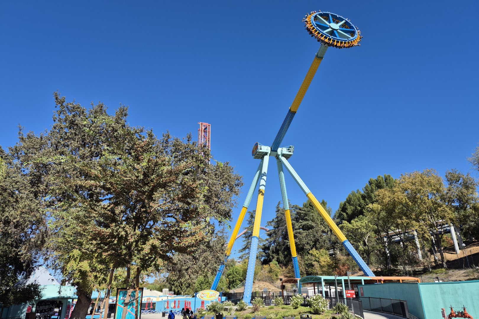 Staan er in Six Flags Magic Mountain echt alleen maar achtbanen? Neen, natuurlijk niet. Hoewel de rollercoasters het leeuwendeel van de aandacht opeisen, vindt ook een liefhebber van flatrides hier z’n gading. We zien in dit segment zowel antiek als hypermodern materiaal. Nostalgici kunnen terecht bij een ouderwets schommelschip of een zeldzame Round-Up, terwijl de hedendaagse thrills geleverd worden door Lex Luthor – Drop of Doom (een 120 meter hoge vrijevaltoren) en CraZanity, een reuzenschommel die een maximale hoogte van ruim 50 meter aantikt. En nu we het toch over immens hoge attracties hebben: dankzij Roller Coaster Tycoon ben ik al jaren geïntrigeerd door de 120 meter hoge Sky Tower. Deze rode panoramatoren is een opmerkelijk onderdeel van de skyline en de uitzichten op het park zijn ongetwijfeld briljant. Helaas is het ding al jaren dicht en ik acht de kans klein dat het panoramische platform ooit heropenen zal. Zonde.