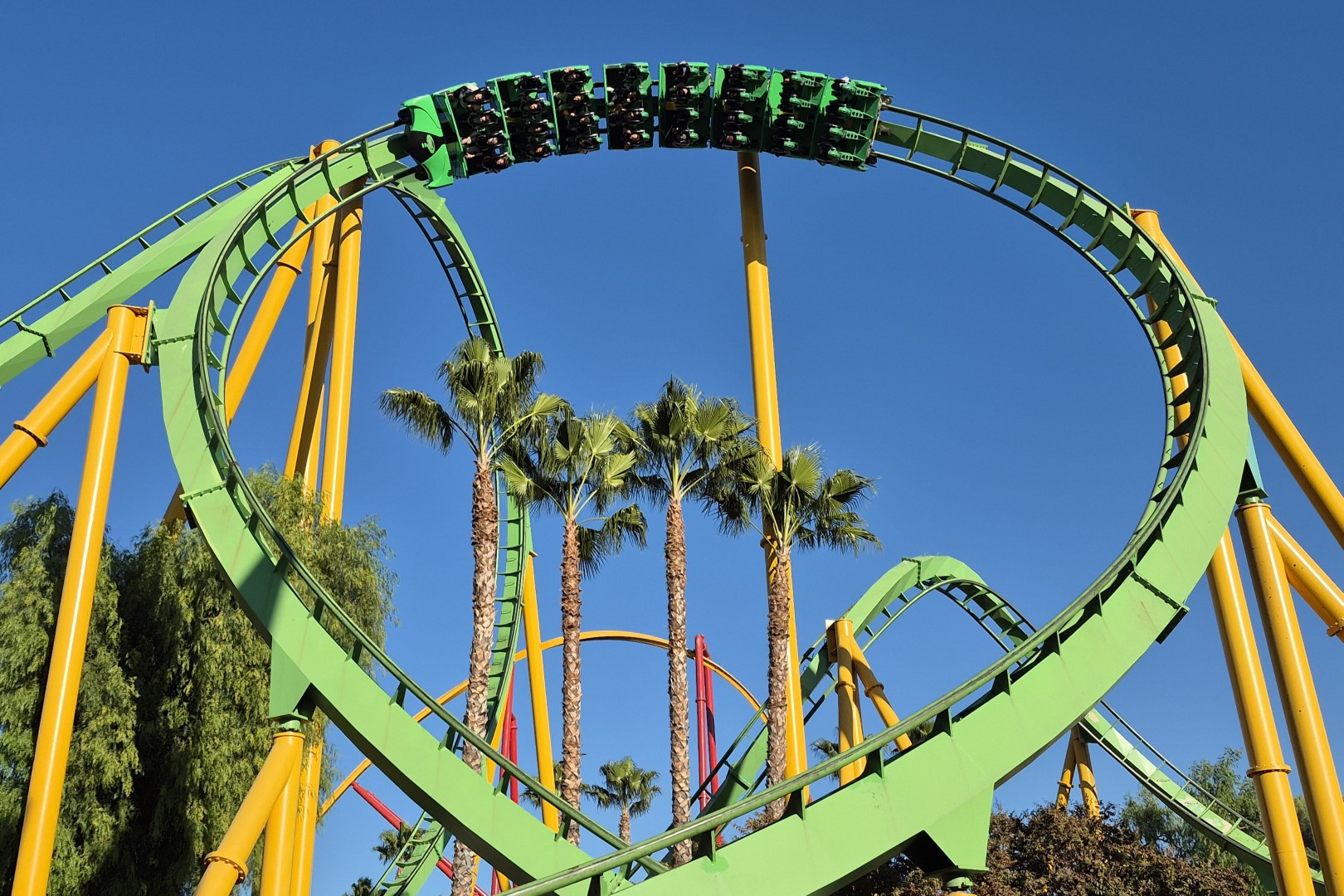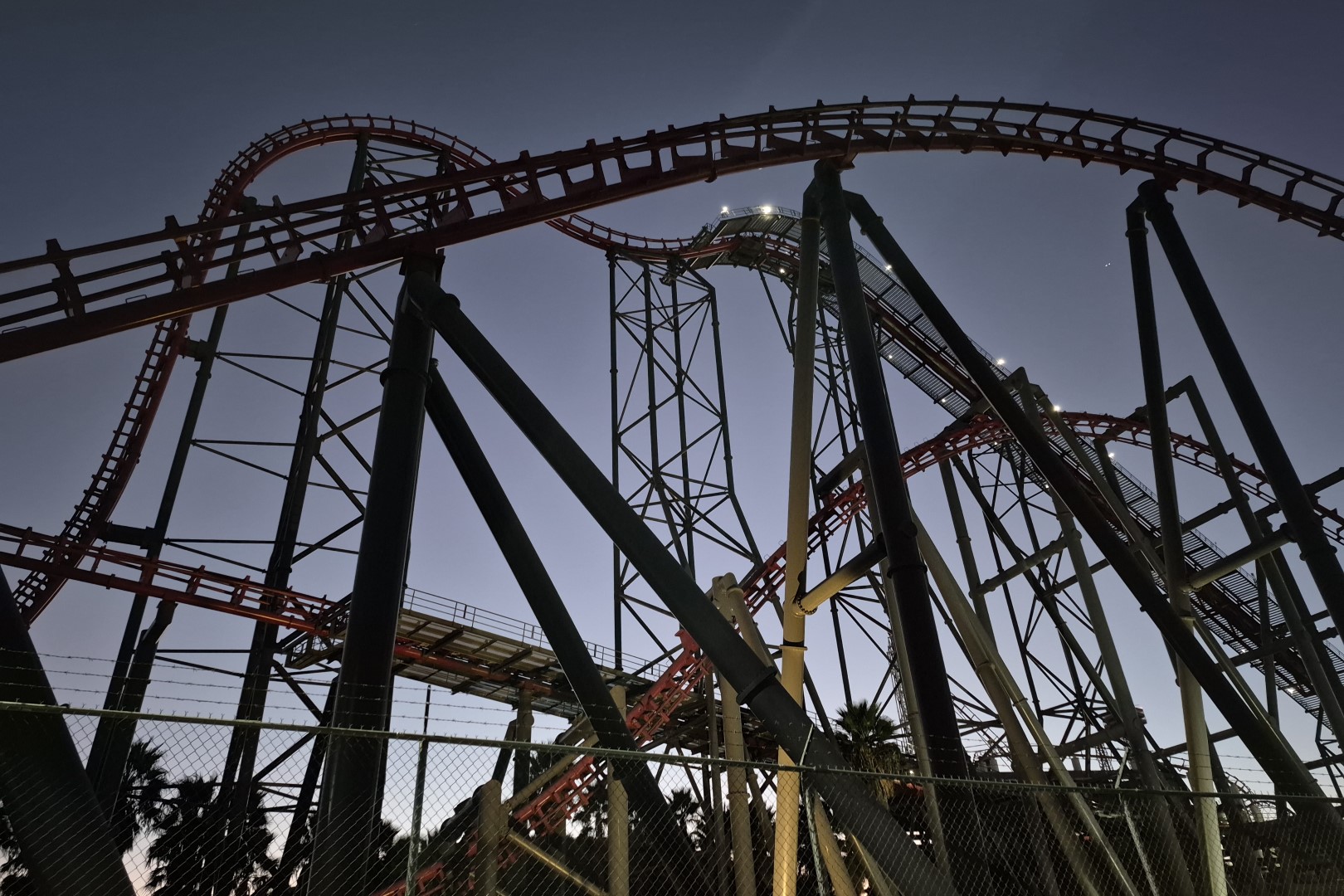 Wanneer de avond valt, zijn we uitgecoasterd. Uitgeloopingd. Uitgelanceerd. Uitgeraasd. Doorgaans verlaat ik een pretpark met een beetje tegenzin, maar in Six Flags heb ik er echt wel genoeg van. Dat lijkt me grotendeels de schuld van het tamelijk eenzijdige aanbod. Want hoewel er in dit park ook flatrides, waterattracties en een darkride staan, vulden we de dag toch vooral met achtbaanritten. Sommige van die rollercoasters spelen mee met de wereldtop, maar we beleefden eveneens heel wat matige exemplaren. In zo’n park als Six Flags voelt het soms aan alsof je achtbanen doet om een lijstje af te werken, en dat mag eigenlijk niet de ingesteldheid zijn. Hecht je, net zoals ik, veel belang aan darkrides en rustmomentjes? Dan kan ik je alvast verklappen dat Six Flags Magic Mountain het minst interessante pretpark in de wijde omgeving van Los Angeles is.