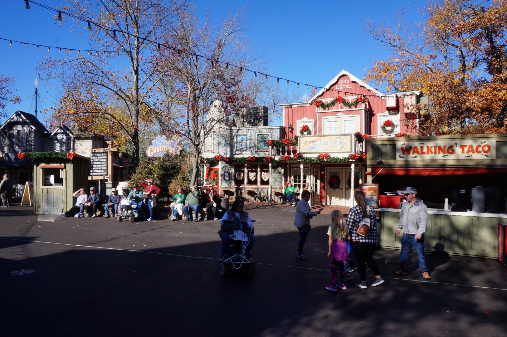 In een bepaald opzicht is Silver Dollar City het EPCOT van de Midwest. Niet omdat er hier een zilveren bol staat, wel omdat het park bovengemiddeld veel seizoensgebonden festivals organiseert. Tijdens die evenementen focust men op aangepaste shows, extra decoratie en een reeks speciale snacks. Bij de start van het pretparkjaar zijn er de Spring Exposition en een Bluegrass-festival, waarna de Summer Celebration en het Harvest Festival plaatsvinden. Wij bezoeken Silver Dollar City dan weer tijdens An Old Time Christmas, wat uitgeroepen werd tot een van Amerika’s beste Kerst-happenings. Er is ontzettend veel live entertainment en het park wordt versierd met 6,5 miljoen lichtjes. De gekleurde lampjes zijn doorheen het hele park te zien, maar het epicentrum van de lichtjespracht bevindt zich in themazone Midtown, vlakbij de ingang van het park. Ik bewonder het schouwspel met grote verbazing en ik kan me amper voorstellen hoeveel werk het vergt om al deze lichtjes op te hangen. Ben je een fan van buitensporige kerstdecoraties? Dan is Silver Dollar City the place to be.