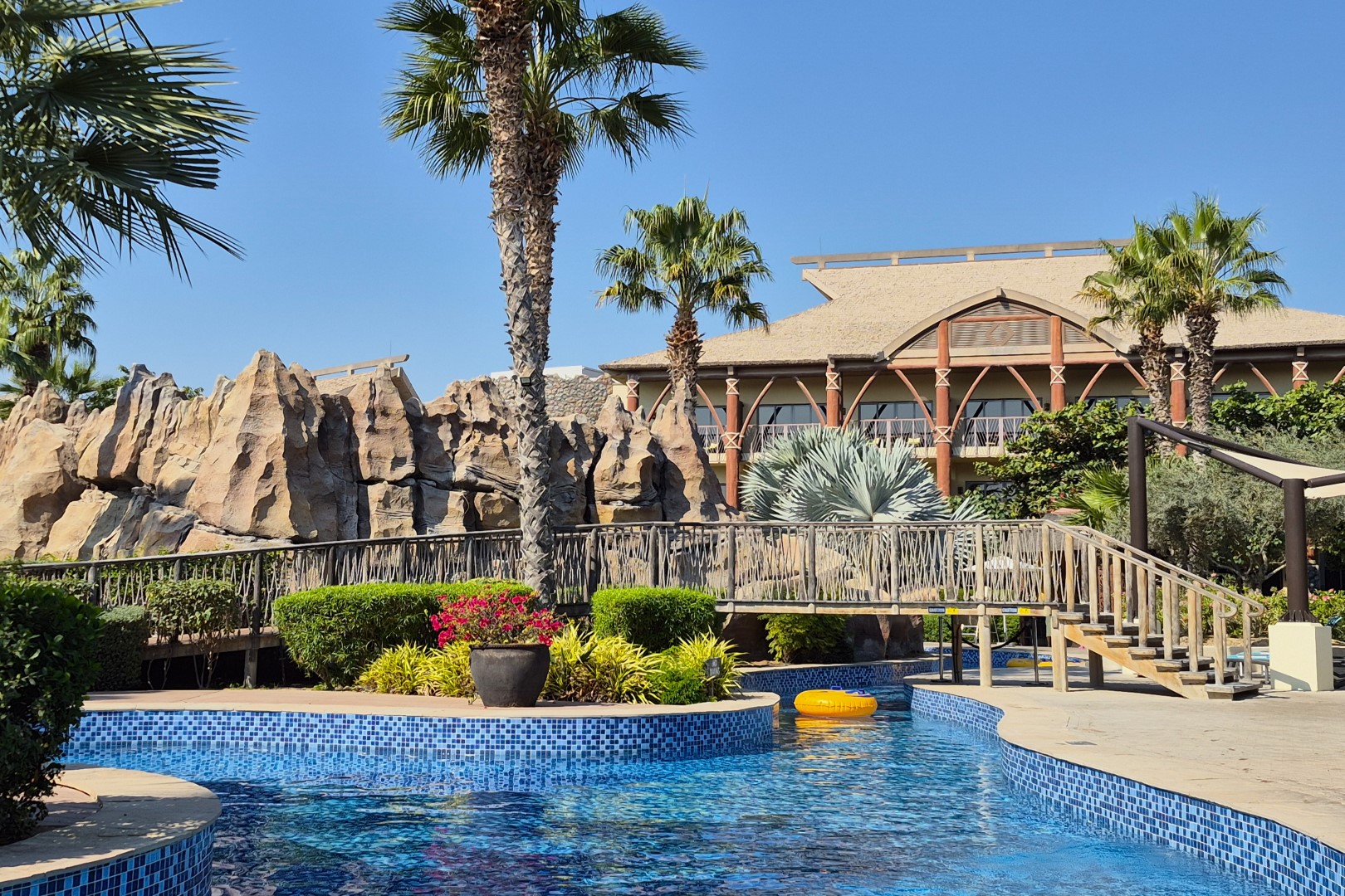 Lapita valt te beschrijven als Dubai Parks & Resorts’ alternatief voor Disney’s Polynesian Village, een van de meest iconische hotels in Walt Disney World. Ook Lapita roept namelijk de sfeer en exotiek van Polynesië op. Personeelsleden begroeten iedereen met een hartelijke ‘Aloha’ en er wordt bij aankomst meteen een bloemenkrans aangereikt. Verder zien we veel houten elementen, tropische vegetatie en verwijzingen naar de Tiki-cultuur. De lobby oogt schitterend, maar dat blijkt slechts een voorproefje van de vele pracht en praal die ons te wachten staat. De architectuur is oogverblindend, er zijn meerdere gezellige horecagelegenheden en we worden regelmatig op live entertainment getrakteerd. Centraal op het domein ontdekken we dan weer helderblauwe zwembaden, inclusief imposante rotspartijen en een traag kabbelende Lazy River.
