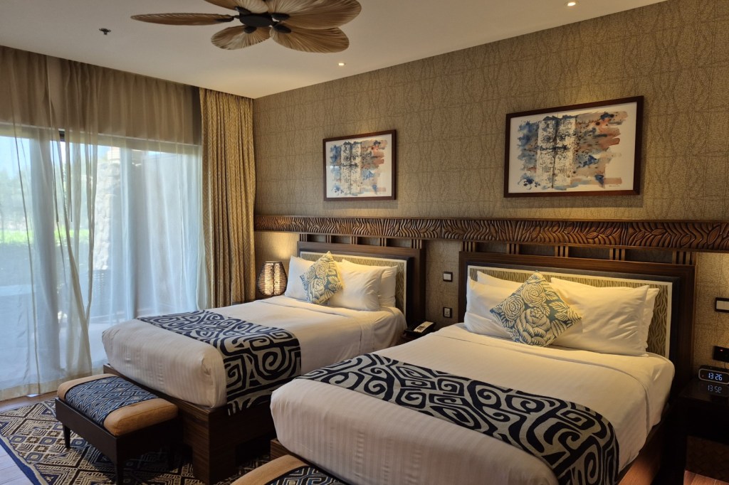 Een verblijf in Lapita is niet gratis. Voor een kamer met ontbijt tellen we doordeweeks ongeveer 290 euro per nacht neer. Dat is meer dan we gewoonlijk aan een verblijfplaats spenderen. De kwaliteit is echter in verhouding, want ik sliep nog maar zelden in zo’n chique hotelkamer. Er is veel ruimte, de bedden zijn buitengewoon comfortabel en we beschikken over een heerlijk privéterras. Tevens wordt het fraaie Tiki-decor van daarbuiten mooi doorgetrokken in het interieur. Ik moet dus concluderen dat de kamer z’n prijs waard is, vooral omdat er ook een paar extra voordelen aan verbonden zijn. Eerst en vooral is de locatie een plus, want je wandelt vanuit Lapita binnen enkele minuten naar de themaparken. Daarnaast zijn toegangskaarten voor die parken inbegrepen in de kost van je verblijf.