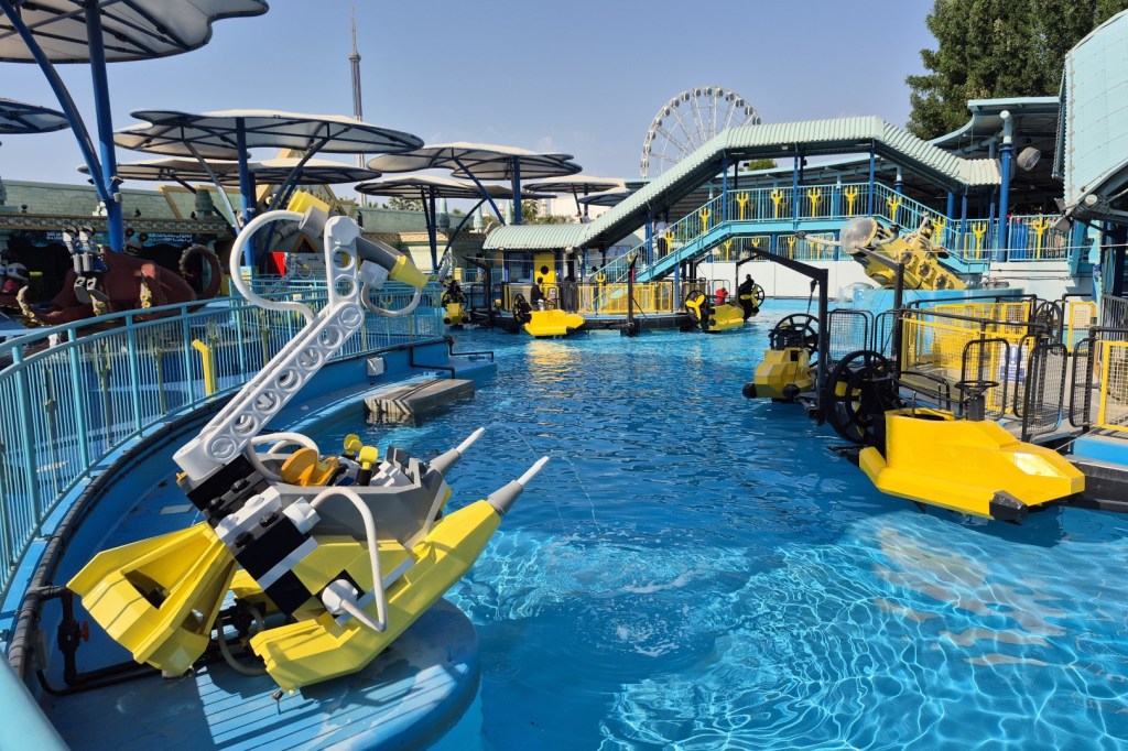 Wat is de link tussen jetski’s, onderzeeërs en oldtimers? Wel, het zijn de voertuigen van de drie grootste attracties in themazone Adventure. De jetski’s horen bij Wave Racers, een familiale flatride die je in vele parken terugvindt. De attractie werd voorzien van een helderblauw waterbassin en enkele leuke thematische touches, dus qua uitzicht valt er weinig te klagen. Tijdens de rit zorgen een tweetal waterbommen dan weer voor extra plezier, wat in het warme Dubai geen ramp is. Legoland kocht de attractie overigens in tweevoud aan en bouwde beide exemplaren netjes naast elkaar. De bezoekersaantallen blijken vandaag echter zo laag dat men er zelfs niet in slaagt om één molen vol te krijgen.