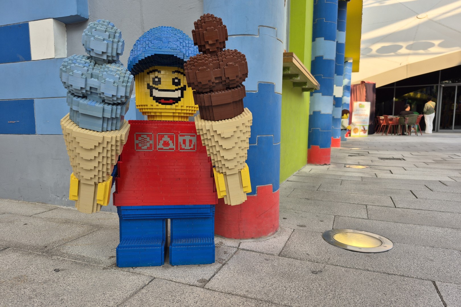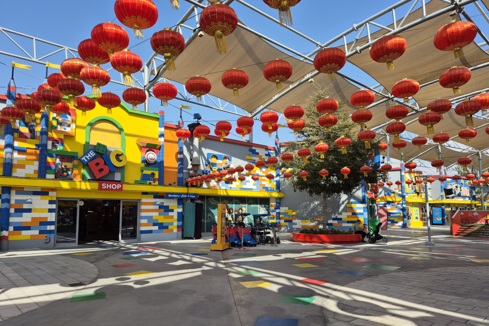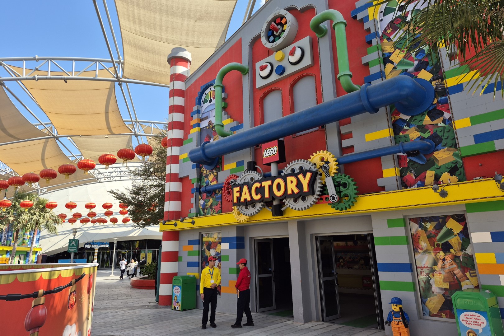Legoland Dubai is als het ware een resort in een resort, dat bestaat uit een themapark, een waterpretpark en een hotel. Voor een waterpark is het in februari misschien iets te fris en dat hotel lijkt vooral op gezinnen met jonge kids gericht, dus ik focus me in dit verslag graag op het eigenlijke Legoland. Dat themapark verwelkomt ons in Factory Street, een deels overdekte wandelboulevard. Je vindt hier kleurrijke geveltjes en alle zaken die je aan de ingang van een pretpark verwacht, maar het parkmanagement hoopt natuurlijk vooral dat bezoekers een kijkje nemen in de grote souvenirwinkel. Deze boetiek, die toepasselijk The BIG Shop genoemd werd, bevat zowat ieder Lego-pakket waar je maar van droomt. We checken uiteraard of je in de Emiraten minder betaalt dan in een Europese Lego Store, maar dat blijkt helaas niet zo.