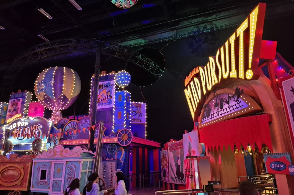 Het DreamWorks-gebied bestaat uit vier afzonderlijke stukken en de opbouw is telkens gelijkaardig. Elke hal bestaat uit een hoofdattractie, één of twee B-rides, souvenirwinkels en horeca. En zoals Unstoppable Awesomeness de blikvanger van het Aziatische hoekje is, zo is Madagascar Mad Pursuit de hoofdreden om het volgende gedeelte te bezoeken. Je verwacht misschien niet dat een familiale animatiefilm als Madagascar inspiratie levert voor een thrill ride, maar het gebeurde hier wel. Motiongate koos voor een Infinity Coaster van Gerstlauer, wat beschouwd mag worden als het premiumproduct van deze Duitse constructeur. Zulke banen zijn doorgaans soepel, ze maken gebruik van comfortabele treintjes en de mogelijkheden qua elementen zijn (zoals de term ‘Infinity Coaster’ doet vermoeden) eindeloos. In dit geval start de rit met een kort darkride-gedeelte, gevolgd door een acceleratie naar de topsnelheid van 83 kilometer per uur. De rest van de lay-out bestaat uit pittig bochtenwerk en enkele subtiele shotjes airtime. Inversies zijn er niet, maar dat is naar mijn gevoel ook niet noodzakelijk om een goede achtbaan te creëren. Mag ik Madagascar Mad Pursuit uitroepen tot een van de leukste Gerstlauer-creaties ter wereld?