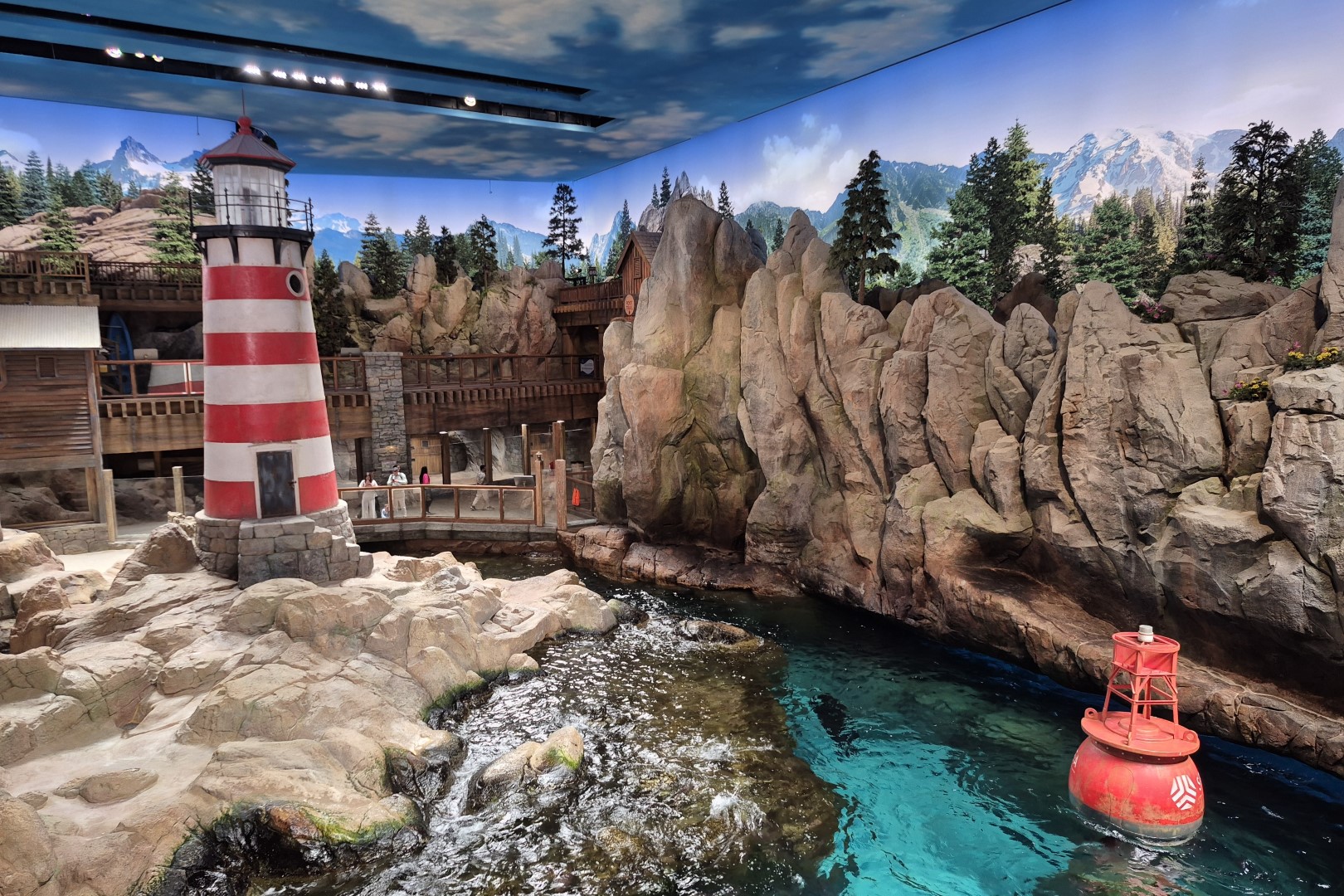 Hoewel Rocky Point een van de kleinste realms van SeaWorld Abu Dhabi is, blijkt het tevens een van de luidste. Niet zozeer omdat er na de Sea Lion Presentation een oorverdovend applaus weerklinkt, maar wel omdat de inwoners van dit gebied heel wat decibels produceren. Wat die zeeleeuwen en zeehonden naar elkaar aan het roepen zijn? Geen idee, maar misschien gaat het wel over de schoonheid van hun verblijf. Deze habitat werd vormgegeven als een lieflijk kustplaatsje in het noordwesten van Amerika. De belangrijkste eyecatcher is een rood-wit gestreept vuurtorentje, maar ik ben ook gecharmeerd door de houten chalets en de besneeuwde bergtoppen die aan de horizon verschijnen. Als bezoeker kan je hier trouwens terecht op drie verschillende observatieniveaus, dus je hoeft letterlijk geen enkele beweging van de beestjes te missen.
