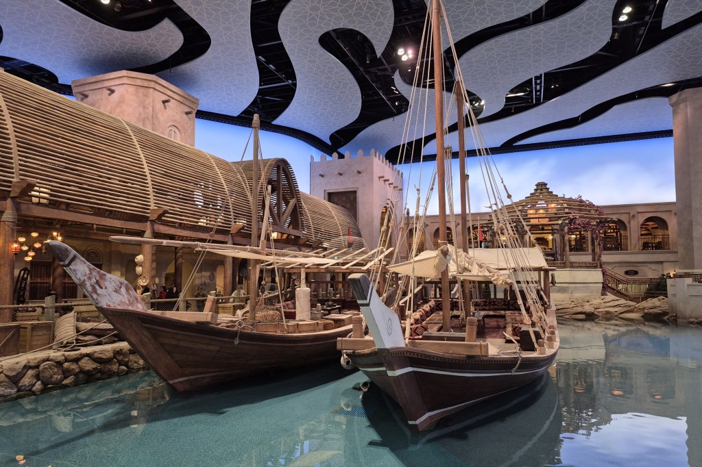 SeaWorld Abu Dhabi is opgedeeld in acht zogenaamde realms en de meesten daarvan verwijzen naar een specifiek onderdeel van de oceaan. In het eerste gebied wordt er alvast een thuismatch gespeeld. Abu Dhabi Ocean toont immers het leven in en rond de Perzische Golf, die hooguit een paar kilometer verderop ligt. We zien hier een heleboel zeesterren en roggen in zogenaamde touch pools, maar je vindt er ook minder onschuldig uitziende creaturen. In de grotere aquaria zwemmen er zeeslangen, bamboehaaien en doejongs (een lokale soort zeekoeien) voorbij. Maar hoe tof al die beestjes ook zijn, mijn aandacht gaat vooral naar de ongelooflijke omgeving. We kuieren namelijk door een sfeervol Arabisch havenstadje. We zien authentieke architectuur, er liggen twee traditionele zeilschepen aan de kade en de grootste souvenirshop van het park werd geïntegreerd in een prachtige souk. Levensechte muurschilderingen wekken bovendien de indruk dat we ons middenin de woestijn bevinden.