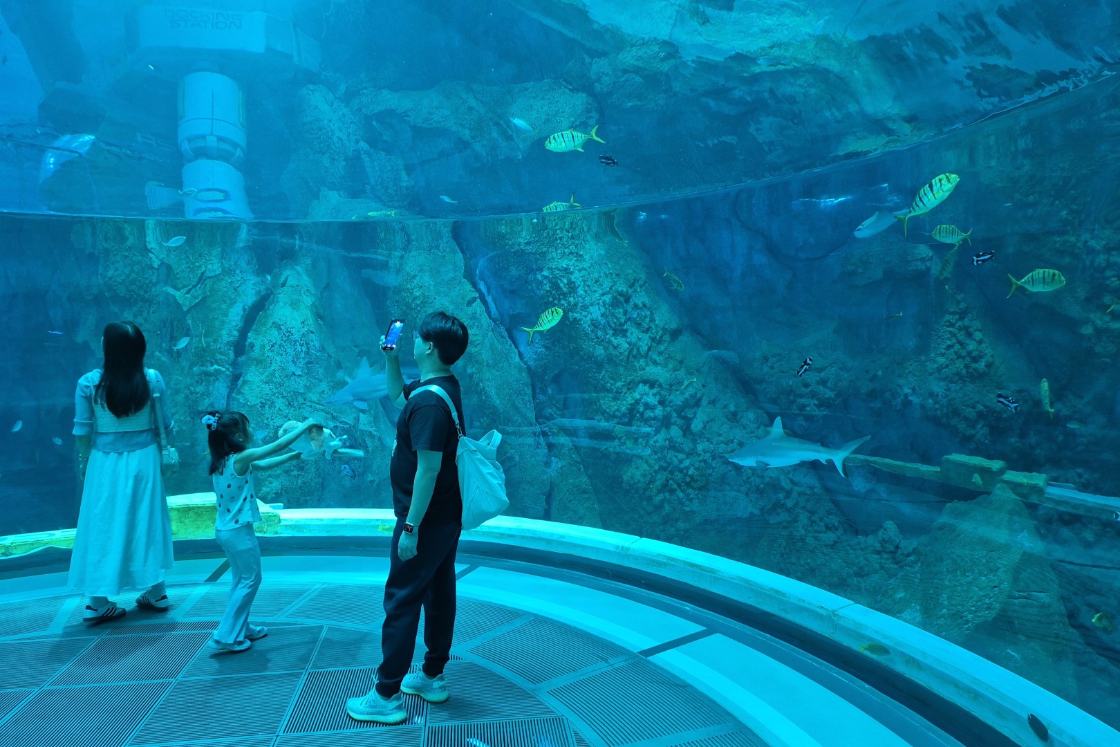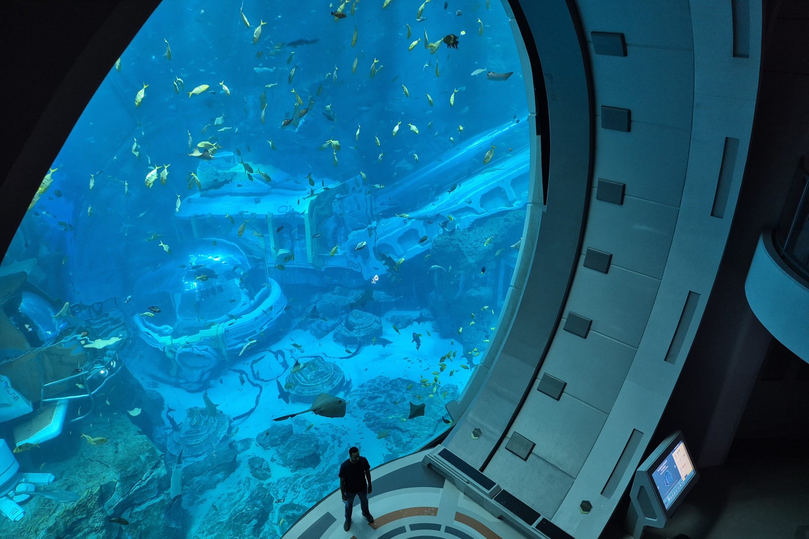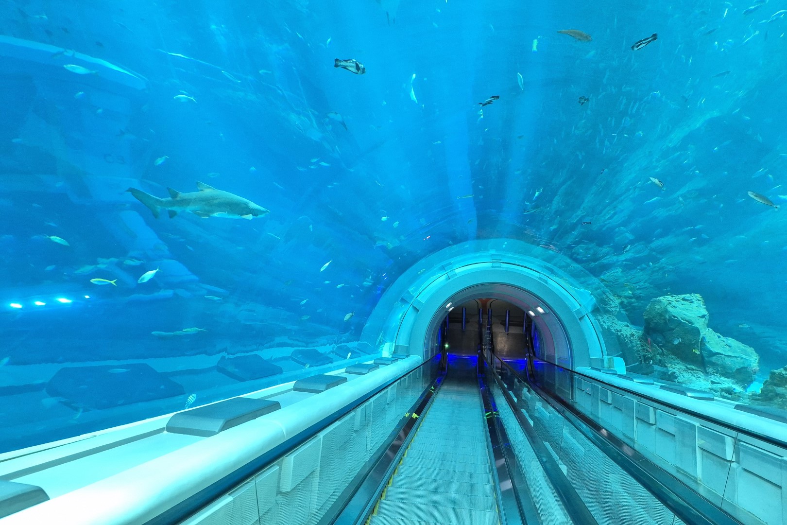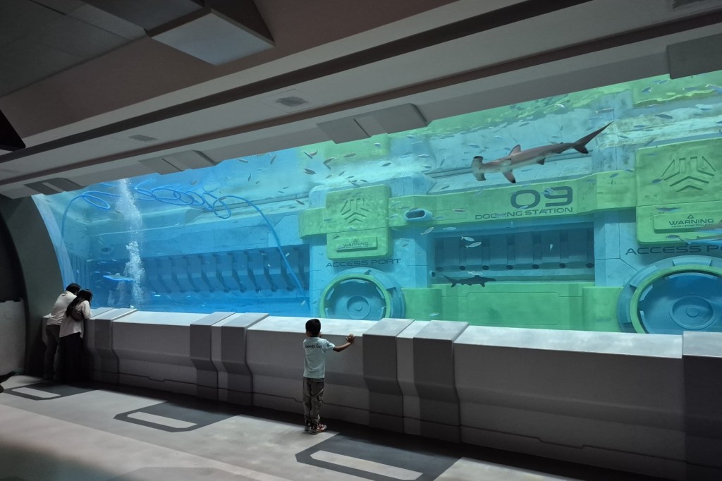 Het aantal diersoorten in Endless Ocean is amper te tellen. De sterkte van dit gebied schuilt echter niet zozeer in de hoeveelheid vissen en zeezoogdieren, maar wel in de manier waarop je hen bekijkt. Endless Ocean werd namelijk ontworpen als een futuristisch, haast ruimte-achtig onderzoekscentrum. Het bestaat uit een ingewikkeld padennetwerk en je hoeft geen vastgestelde route te volgen, waardoor het echt aanvoelt als een ontdekkingsreis. Die reis start in een hypermoderne hal, waar de reusachtige Ocean Pod een eerste spectaculaire blik in de eindeloze oceaan creëert. Vervolgens gebruiken we een van ‘s werelds mooiste roltrappen en laten we ons in de cilindervormige Ocean Shelf helemaal omringen door het water en de wildlife. Het meest verbluffende onderdeel van Endless Ocean ligt trouwens verscholen in een donkere grot. Endless Vista is een twintig meter hoog observatieraam dat vanaf twee verschillende niveaus te zien is. Het smalle venster lijkt rechtstreeks uit een sciencefictionfilm geplukt en biedt een fenomenaal uitzicht op de blauwe wereld die erachter ligt.