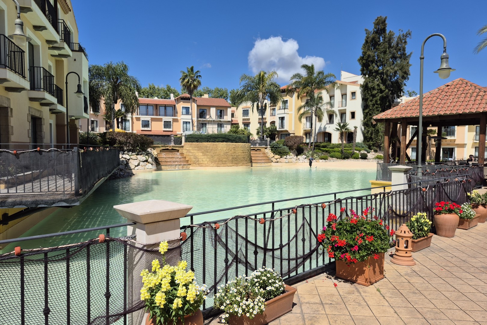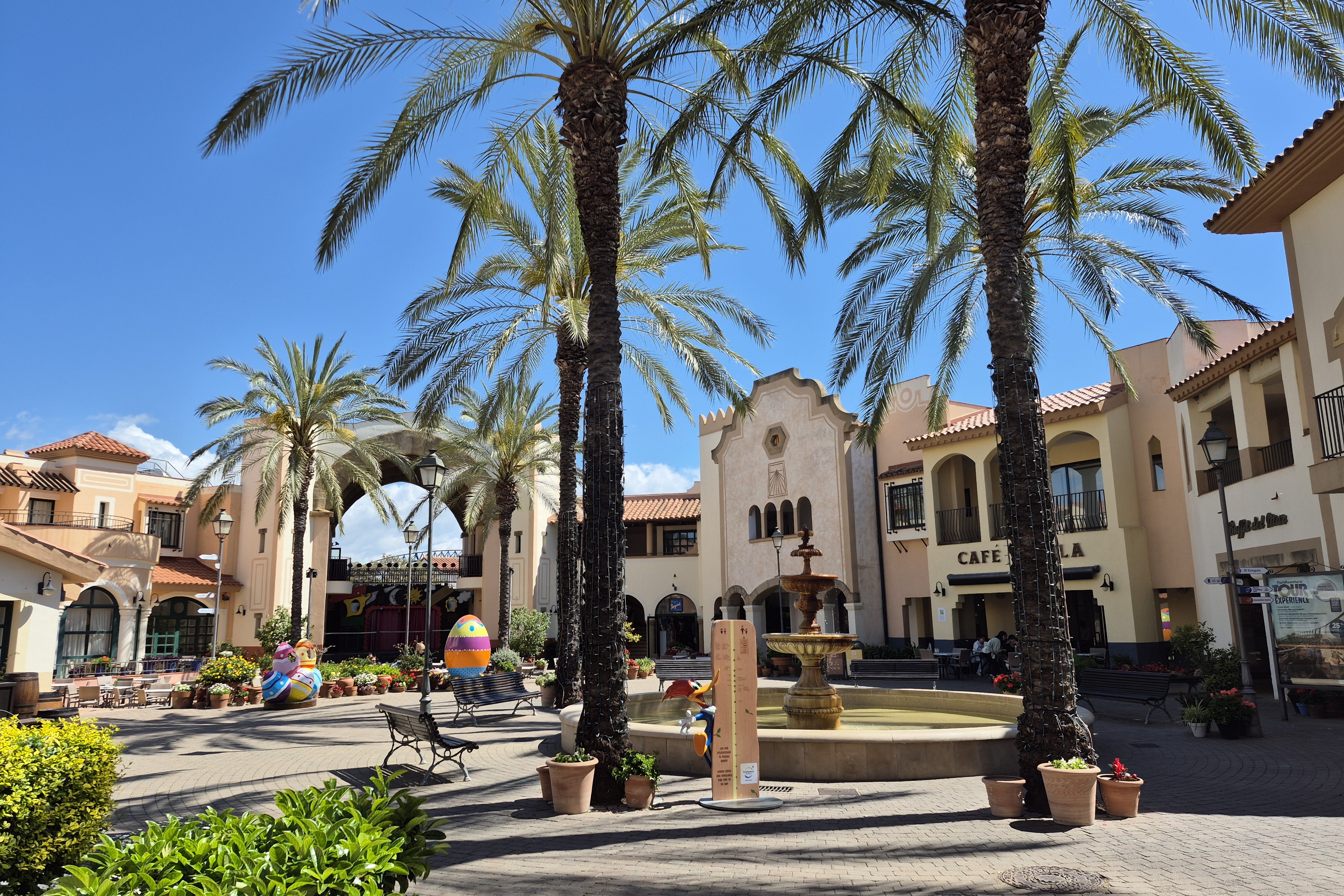 Verblijfsgasten krijgen de keuze uit heel wat verschillende accomodaties, allen met hun eigen karakter. Tijdens vorige trips sliepen we in het knap gethematiseerde Gold River, het exotisch aandoende Hotel Caribe en het Mexicaanse Hotel El Paso. Deze keer opteren we voor Hotel PortAventura, dat vormgegeven werd als een mediterraan vissersdorpje. Ondanks het feit dat dit een van de oudere hotels is, blijft het in mijn ogen een ijzersterke optie. Je proeft hier niet alleen van een heerlijk zomers sfeertje, maar je zit ook letterlijk aan de ingang van PortAventura Park. Vanaf onze kamer is het bijvoorbeeld hooguit vijf minuten wandelen naar toegangspoort voor hotelgasten, die rechtstreeks uitgeeft op themagebied Mediterrània.