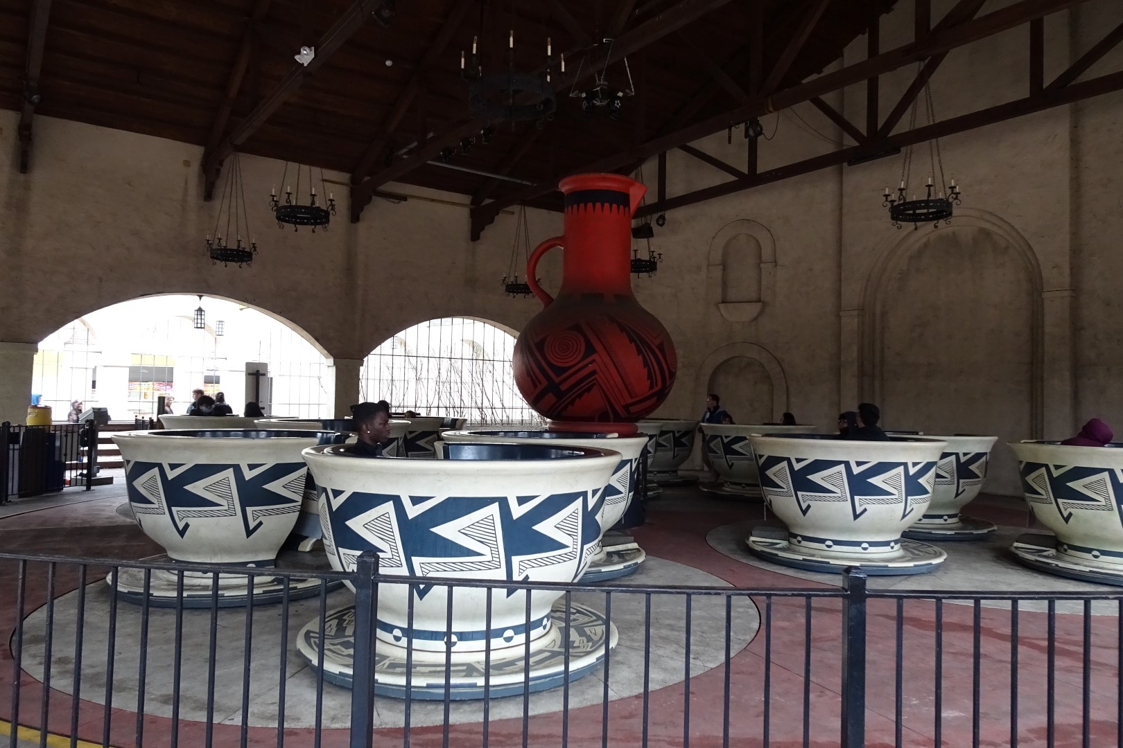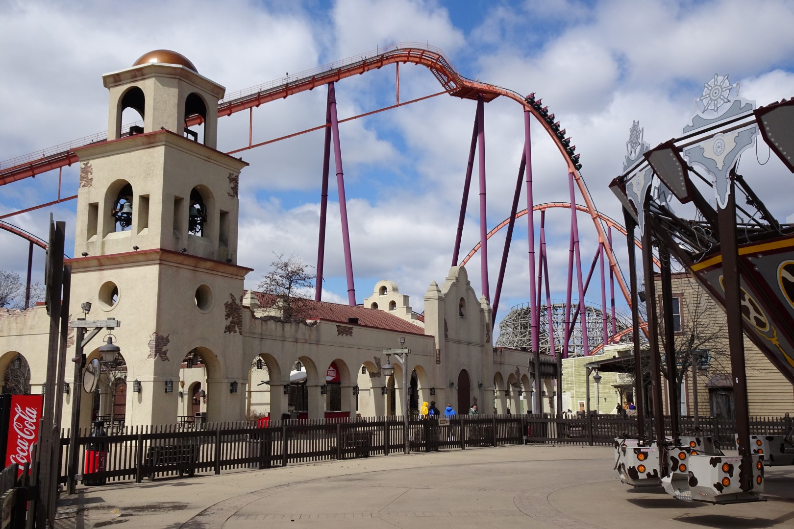 Het themaniveau van Six Flags Great America is wisselvallig. Sommige attracties gaan zonder enige decoratie door het leven, terwijl andere gebieden er knap bij liggen. De mooiste zone van het park is in mijn ogen Southwest Territory, dat z’n inspiratie in Texas en Mexico haalde. Het middelpunt van dit gebied is een statige kapel, die onder andere een theekopjesmolen huisvest. Daarnaast bevat Southwest Territory een aantal klassieke flatrides, waaronder een schommelschip en de 70 meter hoge Giant Drop. Dankzij deze rijkdom aan attracties blijkt Southwest Territory een zone vol dynamiek, en het is hier aangenaam vertoeven.