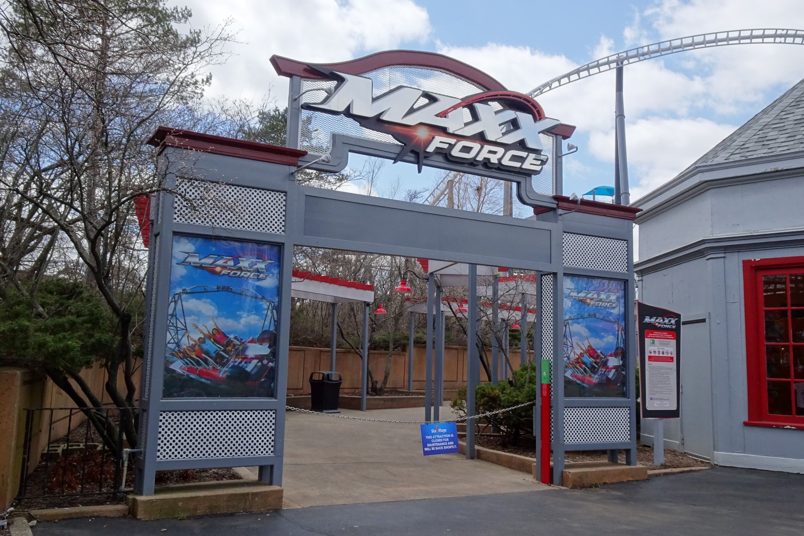 Laat me het slechte nieuws maar meteen aan het begin van dit report melden: het blijft vandaag akelig stil rond Maxx Force. Deze lanceerachtbaan van S&S Sansei behaalt zijn topsnelheid van 125 kilometer per uur in minder dan twee seconden, dus de acceleratie levert ongetwijfeld een buitengewone kick. Daarnaast propte men vier inversies, waaronder een razendsnelle heartline roll, in de lay-out. Ik vind het uiteraard zonde dat ik hier geen review over de rit van Maxx Force kan neertypen, maar het volgende wil ik je wel vertellen: verdorie, wat is dit een lelijke achtbaan. Met z’n afzichtelijke supports, saaie zigzagwachtrij en Spartaans vormgegeven stationnetje verdient deze baan echt geen schoonheidsprijzen. Maxx Force claimt een prominente plek in de skyline van Six Flags Great America, maar helaas niet op de goede manier.