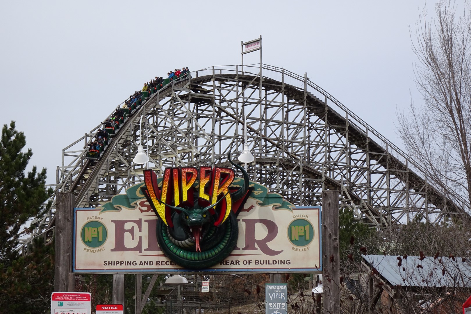 Liefhebbers van wooden coasters zijn ongetwijfeld in hun nopjes wanneer ze Six Flags Great America bezoeken. Het park heeft immers niet minder dan vijf houten credits. Naast de dubbele American Eagle, Little Dipper en de moderne Goliath vind je hier namelijk ook Viper. Dit is een gespiegelde kopie van de legendarische Coney Island Cyclone. De baan ligt een beetje verscholen achter spectaculairdere en modernere rollercoasters, maar het grote publiek lijkt de weg richting Viper wel degelijk te vinden. Terecht, als je het mij vraagt. Ondanks het feit dat Viper behoorlijk onstuimig blijkt, staan de lange lay-out en de laterale g-krachten garant voor een voortreffelijke achtbaanrit.