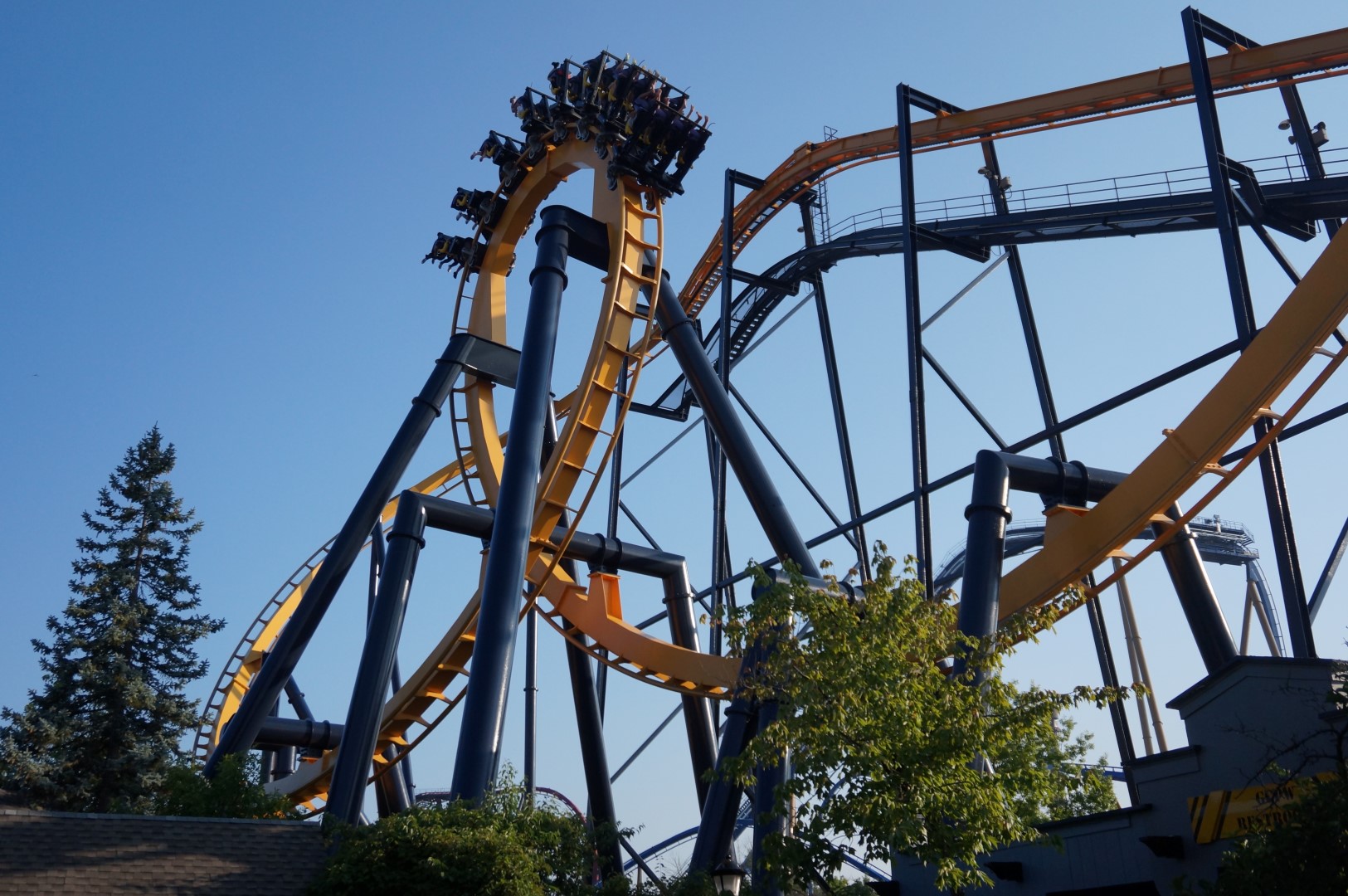 Zowat ieder Amerikaans achtbaanpark plaatste ergens in de afgelopen vijftien jaar een bestelling bij Rocky Mountain Construction. Six Flags Great America kon niet achterblijven en opende in 2014 Goliath, een van RMC’s weinige Topper Track-installaties. Zoals zijn naam doet vermoeden, is Goliath niet bepaald een kleintje. De baan is ruim 50 meter hoog, hij bereikt een topsnelheid van 115 kilometer per uur en er zijn ook twee inversies. Alleen de tracklengte valt een beetje tegen: met z’n 950 meter is de baan behoorlijk kort. De rit lijkt bijgevolg in een vingerknip voorbij, maar toch weet Goliath ons te overtuigen. De eerste afdaling en de overbanked turn zijn fantastisch, terwijl de inversies een heel bijzonder gevoel van hangtime creëren. Hoewel Goliath misschien niet de soepelste of langste coaster uit het assortiment van Rocky Mountain Contruction is, vind ik ‘m echt heel tof.