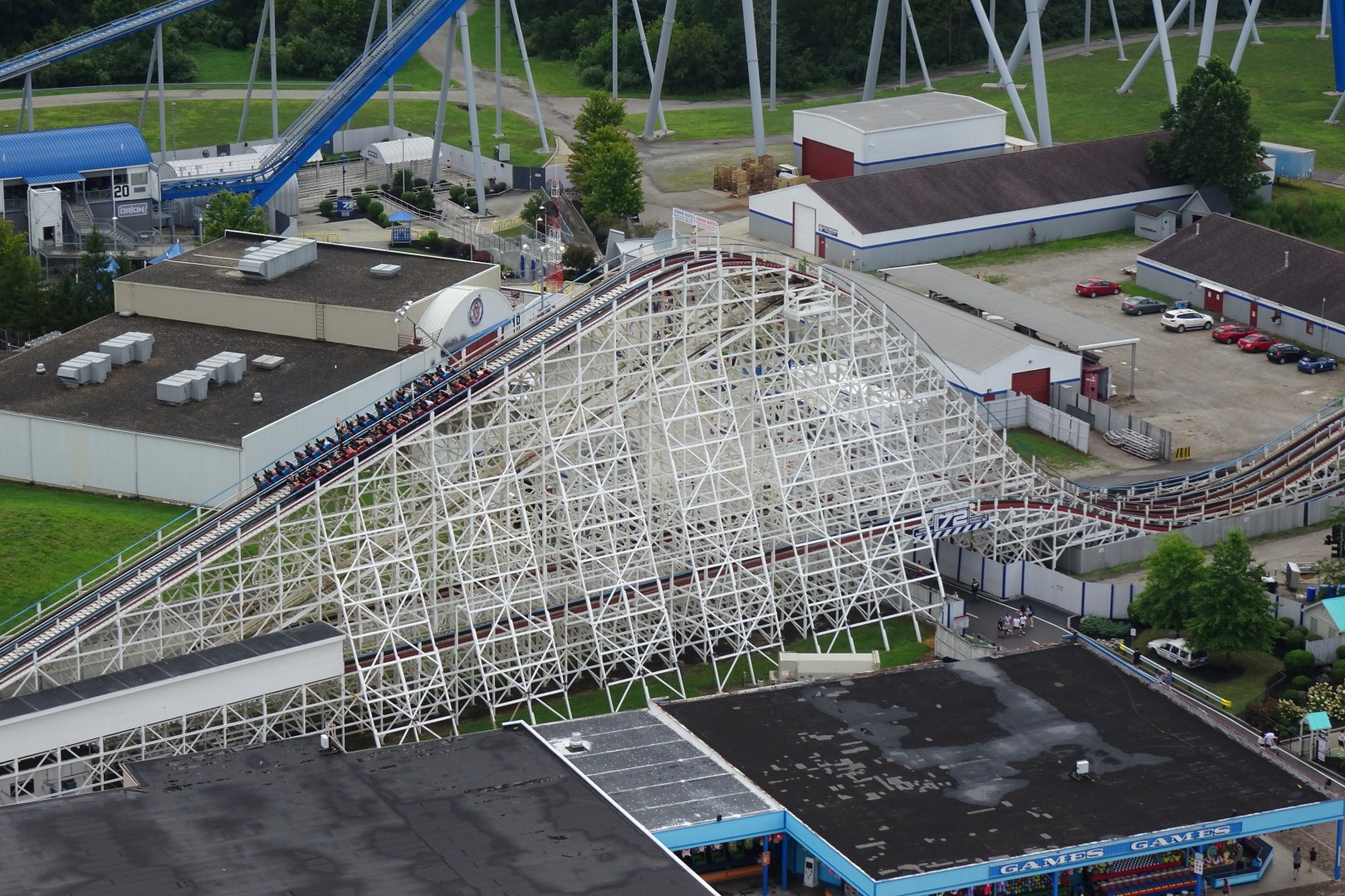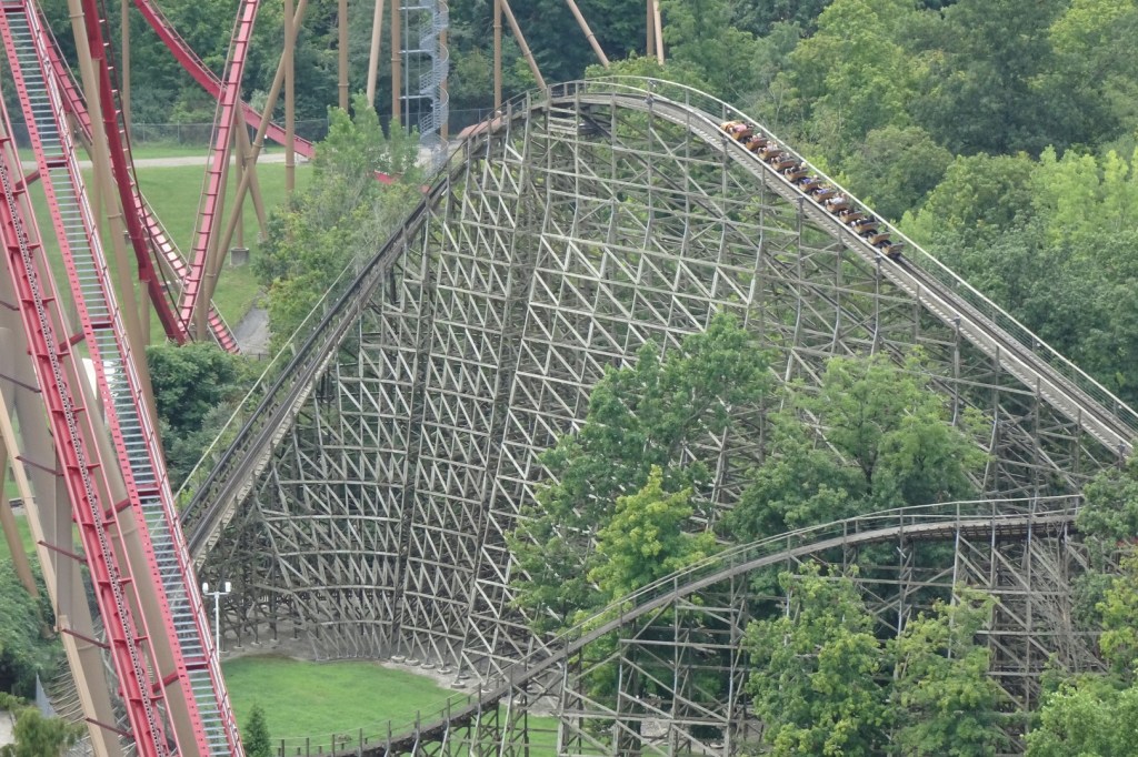 Met 5.730 meter houten achtbaanrails mag Kings Island zichzelf kronen tot the wooden coaster capital of the world. Het record is natuurlijk voor een groot deel aan de aanwezigheid van The Beast te danken, maar ook The Racer doet een duit in het zakje. De out-and-back-lay-out van deze dubbele houten achtbaan loopt grotendeels parallel aan Coney Mall en dat zorgt voor een oogstrelende backdrop. Racer moet het overigens niet enkel van z’n looks hebben; ook de rit weet ons op aangename wijze te verrassen. Deze antieke witte woodie genereert meer airtime dan we verwachtten en hoewel de baan er al sinds 1972 staat, bollen de treinen nog steeds relatief soepel. Kortom… The Racer is een zeer genietbare rollercoaster met een hoge herhalingswaarde.