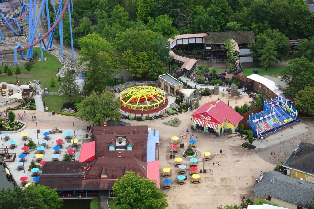 We bezoeken Kings Island middenin het zomerseizoen. Daardoor profiteren we van ruime openingstijden en een evenement met de naam Grand Carnivale. Deze zomerse versie van Mardi Gras brengt extra decoraties naar International Street, terwijl we bij diverse kramen aangepaste snacks en drankjes kunnen bestellen. Rond valavond presenteert men bovendien de Spectacle of Color Parade. En hoewel het voor zich spreekt dat je hier geen Disney-waardige parade mag verwachten, worden we aangenaam verrast door de schaal van het geheel. Kings Island trommelde een heleboel dansers op en de wagens zien er best prima uit. En er is nog meer avondentertainment: om 22.00 uur presenteert men een drone-, laser- en vuurwerkshow die het best te zien is vanaf de Main Street. De drone-figuren blijken minder verbluffend dan die van Disneyland Paris, maar als totaalspektakel kunnen we er niks op aanmerken. Mooie afsluiter van een mooie dag!