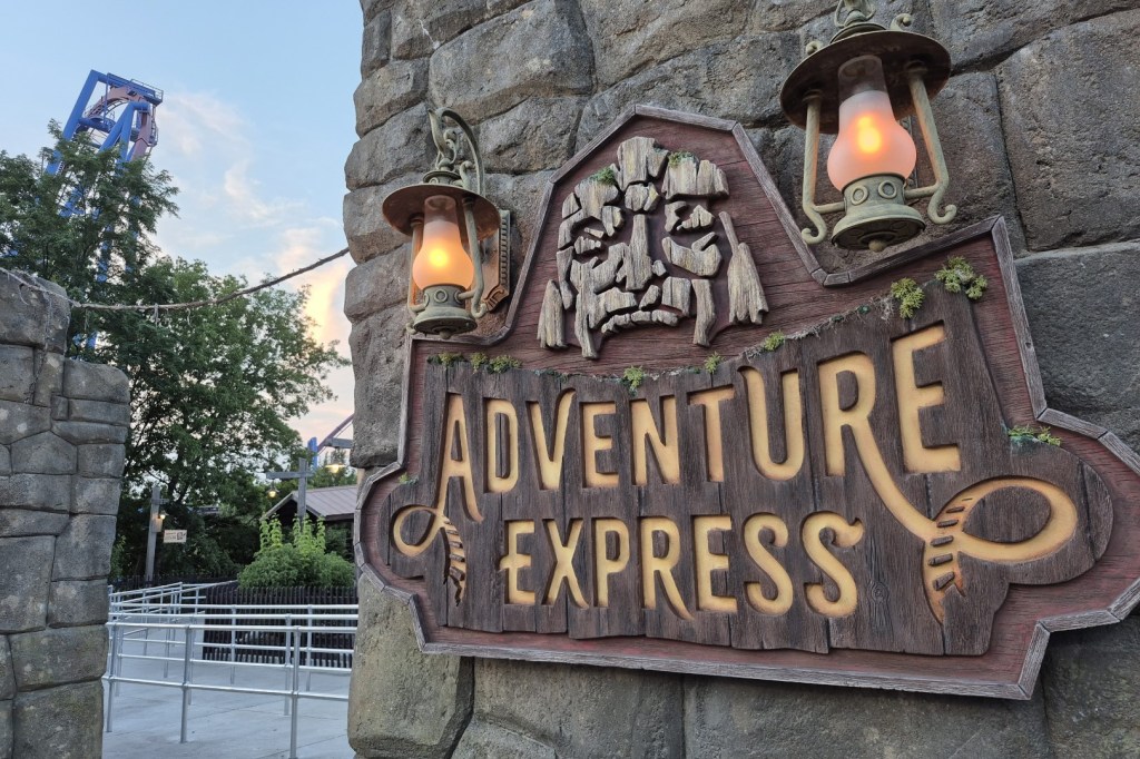 De headliner binnen deze zone is Adventure Express. Dit is een van de vele Arrow mijntreinachtbanen in de Verenigde Staten, maar in mijn ogen is het wel een van de leukste exemplaren. We ontdekken hier een originele en onvoorspelbare lay-out, al is het vooral de aankleding die me overtuigt. Het station ligt er bijvoorbeeld prachtig bij en aan het begin van de rit zit er een leuk effect waarbij onze trein op de verkeerde rail belandt. Ook verderop zien we nog een paar fijne staaltjes theming, onder meer op de tweede lifthill. Deze werd in z’n geheel overdekt en simuleert een eeuwenoude, vervloekte tempel. Het Indiana Jones-gehalte ligt dus behoorlijk hoog bij Adventure Express…