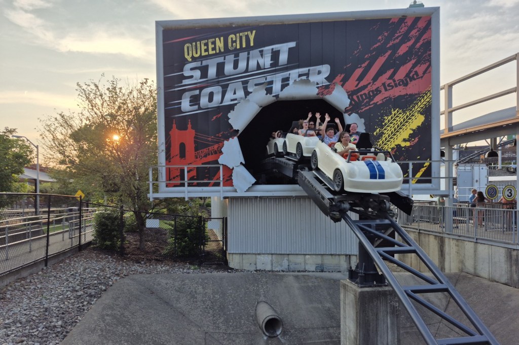 The Beast draagt al bijna een halve eeuw dezelfde naam. Even verderop staat er dan weer een rollercoaster die tijdens een loopbaan van twintig jaar al drie verschillende namen kreeg. Het ding opende in 2005 als Italian Job – Stunt Track, wat drie jaar later veranderde in Backlot Stunt Coaster. Tegenwoordig spreken we daarentegen over Queen City Stunt Coaster, verwijzend naar de koosnaam van Cincinnati. Deze gelanceerde achtbaan van Premier Rides simuleert bijgevolg een wilde rit door de stad. Het begint met een goeie acceleratie en een opwaartse helix die zo heftig is dat er kortstondig een grijze waas voor onze ogen verschijnt. Daarna wordt Queen City Stunt Coaster plots veel tammer en helaas zien we tijdens de rit ook heel wat vergane glorie. Oorspronkelijk werd deze rollercoaster opgesmukt met meerdere geluids-, water-, licht- en vuureffecten, maar daar blijft anno 2025 niets meer van over. We houden dus een tamelijk wrang gevoel over aan deze achtbaan, ondanks de prima hardware.