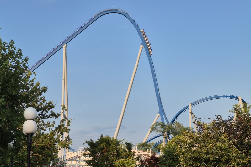 Als het van de pretparkgroep achter Kings Island afhangt, zijn twee B&M hyper coasters automatisch beter dan één B&M hyper coaster. Kings Island mag zich bijgevolg, net zoals Carowinds en Canada’s Wonderland, de trotse eigenaar van een dubbele portie torenhoog B&M-plezier noemen. Enkele honderden meters van Diamondback verrees in 2020 namelijk Orion, een helderblauwe kolos met een hoogte van maar liefst 90 meter. Wanneer we ook de topsnelheid van 146 kilometer per uur vermelden, zou je vermoeden dat deze baan moeiteloos de oudere Diamondback overtreft. Maar… de realiteit blijkt anders. Laat me vooropstellen dat Orion een voortreffelijke rollercoaster is, maar eigenlijk had ik er meer van verwacht. Ten eerste is dat te wijten aan de nogal kale locatie. Omwille van het ontbreken van near-misses is het snelheidsgevoel namelijk niet optimaal. Ten tweede voelt de lay-out enigszins incompleet aan. Hoewel het raar lijkt om een 1.620 meter lange coaster ‘te kort’ te noemen, is het aantal elementen gewoonweg erg beperkt. De treinen hebben genoeg vaart om een langer circuit af te leggen, dus Kings Island had er makkelijk enkele extra bochten of airtime-heuvels aan kunnen plakken. In zijn huidige vorm vind ik Orion dus vermakelijk, maar niet briljant.