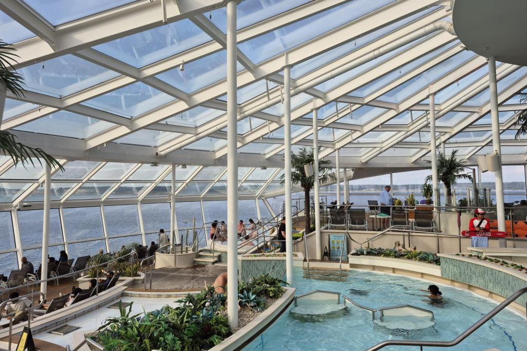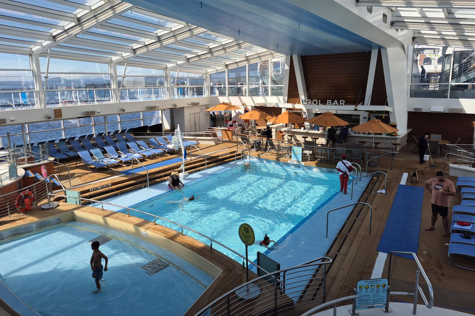 Royal Caribbean staat bekend als een familiaal georiënteerde, energieke cruisemaatschappij met een rijkelijk gevuld activiteitenprogramma. Hoewel de Quantum of the Seas een formaatje kleiner is dan later gebouwde schepen als Oasis of the Seas en Star of the Seas, is er ontzettend veel te beleven. De agenda staat vol grootschalige shows, trivia, sportsessies, karaoke en nog zoveel meer. Vooral op de hoger gelegen dekken weten we aanvankelijk niet waar eerst te kijken. We vinden daar onder andere een surfsimulator, een skydive-windtunnel, een muurklimwand en een joggingparcours. Daarnaast zijn er meerdere zwembaden, waarvan vooral het exemplaar in het Solarium een extra vermelding verdient. Deze enorme ruimte bevindt zich aan de voorzijde van het schip en is enkel toegankelijk voor volwassenen. De sfeer is er bijgevolg serener en je zit minder opeengepakt dan aan de andere zwembaden. Onder de glazen koepel van het Solarium heerst er trouwens jaarrond een aangename temperatuur, waardoor dit een gedroomde plek is om even te ontsnappen aan het soms gure weer in de noordelijke regio’s van de Verenigde Staten.