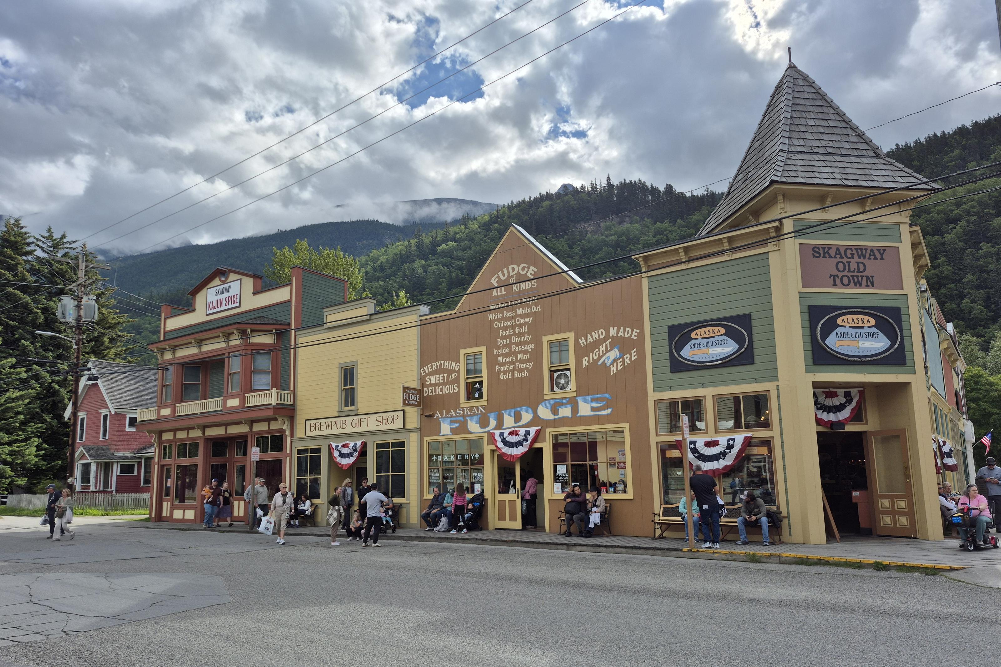 Gelukkig bezorgt Skagway ons sowieso een portie Disney-magie dankzij Broadway. Deze straat ligt op wandelafstand van de cruiseterminal en fungeert als het toeristische hart van de stad. In de winkels vinden we een haast oneindig scala aan dure souvenirs en in de lokale pub betaal je eveneens een premiumprijs voor je biertje. Toch hoef je geen cent neer te tellen om de echte schoonheid van Broadway te ontdekken. De houten gevels die deze boulevard omzomen, zijn namelijk regelrechte kunstwerkjes. Skagway speelde omwille van z’n locatie een belangrijke rol in de Klondike Gold Rush van 1896. Er ontstond toen een bloeiend mijnstadje en men heeft geprobeerd om die oude sfeer te bewaren. Aangezien dit een pretparkwebsite is, mag ik het gerust zeggen: het centrum van Skagway voelt aan als een combinatie van Disney’s Main Street USA en Frontierland. Voor sommigen klinkt het misschien beledigend wanneer ik Skagway als pretparkachtig beschrijf, maar ik bedoel het wel degelijk positief. Hou je camera dus in aanslag wanneer je over Broadway kuiert.