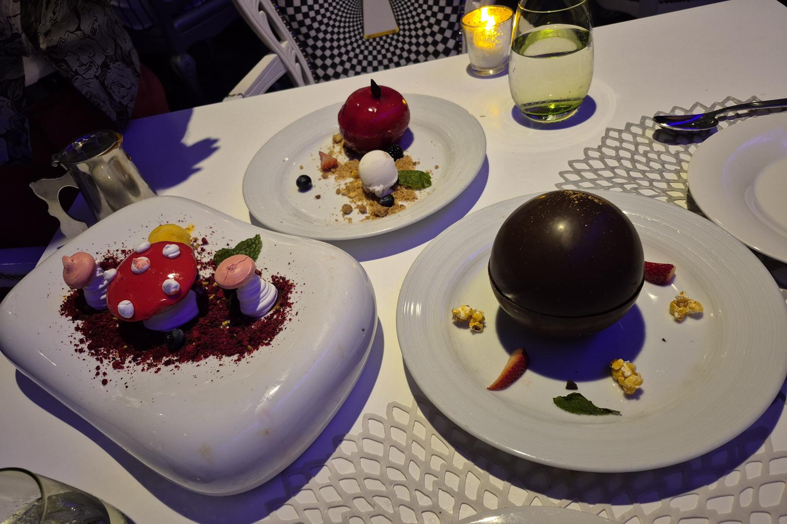 Tijdens het diner worden we niet door robotarmen bediend… en maar goed ook. Om acht uur ‘s avonds staat ons vaste tafeltje klaar in een van de hoofdrestaurants en we worden daar telkens ontvangen door dezelfde obers. Ze zijn erg professioneel en ze gaan tot het uiterste om eventuele speciale wensen te realiseren. Qua service moet Royal Caribbean in mijn ogen dus niet onderdoen voor Disney Cruise Line. Wanneer we over de kwaliteit, presentatie en portiegrootte van de maaltijden praten, krijgt Disney echter mijn voorkeur. Ik eet op Quantum of the Seas prima en het is tof dat de menukaart dagelijks door een ander land geïnspireerd wordt, maar grote verrassingen zijn er niet. Men maakt gelukkig veel goed met de ontzettend brede keuze aan specialty dining en quick service-locaties. The Café @ Two70 wordt ons favoriete adresje voor een snelle en lichte lunch, terwijl we in de avond waanzinnig genieten van de artistiek gedresseerde borden in Restaurant Wonderland.