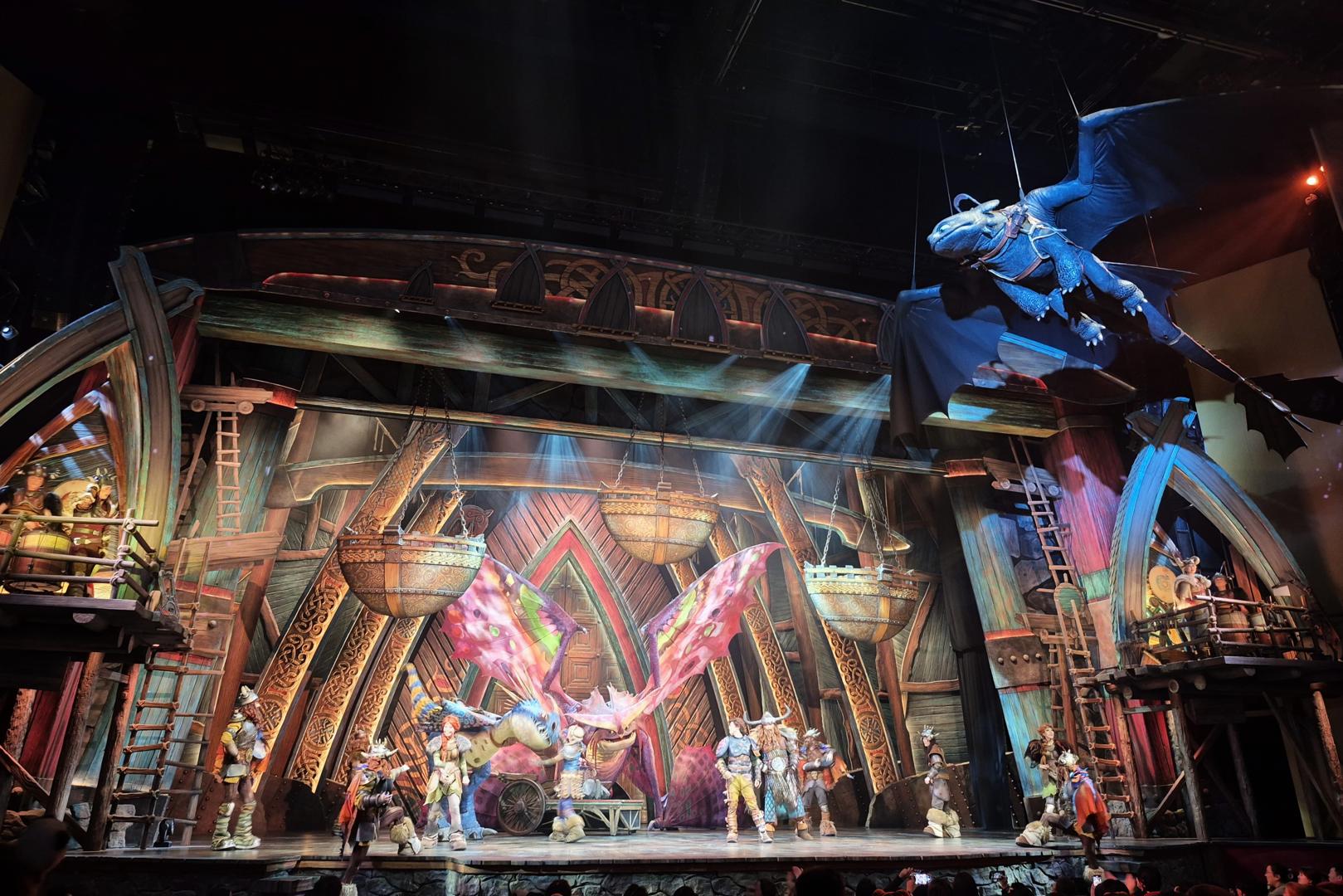 Met twee showlocaties is themazone Hollywood het epicentrum van het entertainment. Lights Camera Action bevindt zich achter de gevel van het Pantages Theatre, terwijl we in het kolossaal uitziende Universal Theatre mogen plaatsnemen voor Untrainable. Het Aziatische exterieur van het gebouw is indrukwekkend te noemen, maar onze monden vallen pas helemaal open wanneer de voorstelling van start gaat. Untrainable is een soort vervolg op de How To Train Your Dragon-films. Het verhaal wordt tot leven gewekt met grootschalige decors, live zang en een aantal machtige draken-animatronics. De actie speelt zich overigens niet enkel op het podium af, maar ook in de lucht. Hoofdrolspelers Hiccup en Toothless maken hun entree immers vanuit een dik wolkendek en vliegen vervolgens een ererondje boven de hoofden van toeschouwers. Mede dankzij de magistrale soundtrack van John Powell is dat een kippenvelmoment van de allerhoogste graad. Hoewel ik vantevoren wist dat het er zat aan te komen, kreeg ik alsnog een krop in de keel toen het daadwerkelijk gebeurde. Ondanks het feit dat de dialogen en liedjes in het Mandarijn uitgevoerd worden, maakt Untrainable dus een ijzersterke indruk. Mis deze adembenemende show alsjeblieft niet!