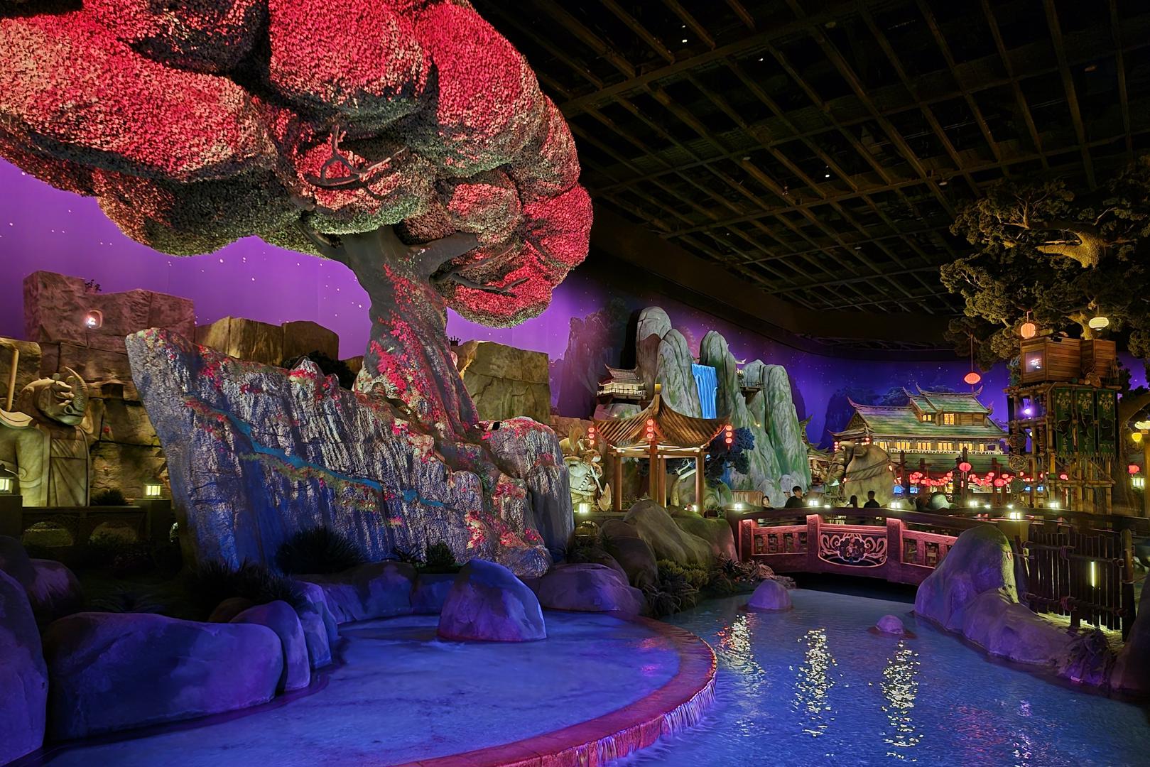 DreamWorks leverde tijdens de afgelopen twee decennia meerdere films af die qua storytelling en animatiestijl niet moeten onderdoen voor Disney. Een van hun succesvolste filmfranchises is Kung Fu Panda. En de avonturen van die stuntelige reuzenpanda blijken een hit in China. Men gebruikte het thema namelijk niet alleen voor de aankleding van onze hotelkamer, maar er werd ook een heel themagebied aan Po gewijd. Het zogenaamde Land of Awesomeness is een buitengewoon sfeervolle indoorzone die ons meevoert naar een authentiek Chinees dorp. Het nachtelijke tafereel is prachtig en ik durf stellen dat dit themaniveau niet zou misstaan in Warner Bros World Abu Dhabi of zelfs Tokyo DisneySea. Net daarom is het jammer dat de bijbehorende darkride een beetje mager uitvalt. Kung Fu Panda – Journey of the Dragon Warrior is een boottocht à la Pirates of the Caribbean, maar er ontbreekt wat schwung. De animatronics zijn te statisch, sommige scènes ogen kaal en schermen spelen naar mijn gevoel een te grote rol in het geheel. Het lijkt er nochtans op dat Universal Studios Beijing veel van deze darkride verwachtte, want men voorzag een wachtruimte met astronomische afmetingen. Indien die ooit vol staat, mag je minimaal drie uur zigzaggen.