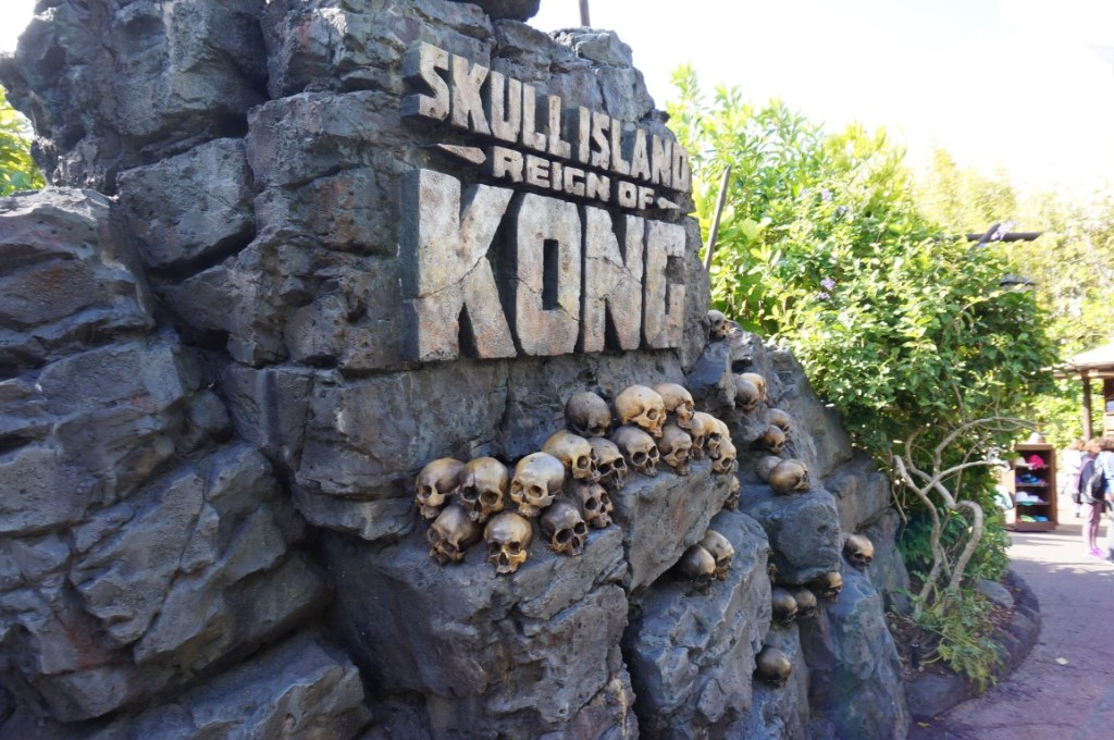 Een kopie van die fabuleuze Jurassic Park Adventure uit Universal Studios Beijing kreeg Islands of Adventure voorlopig helaas nog niet. Net buiten de poorten van het dinogebied vinden we echter wel Skull Island: Reign of Kong. Deze ride is van op de wandelpaden nauwelijks zichtbaar. Het naambord is weliswaar knap en in de achtergrond spot ik een enorme tempel, maar that’s it. Vanuit fotografisch standpunt is dit een misser, al wordt hierdoor wel een deel van het mysterie bewaard. Ik herinner me dat Skull Island me tijdens de eerste rit enigszins teleurstelde. Ik had m’n zinnen namelijk op een indrukwekkende darkride gezet, maar kreeg zo’n suffe immersive tunnel in de plaats. Nu stap ik echter met juiste verwachtingen in, en dan valt de attractie niet tegen. Als het over immersive tunnels gaat, is Skull Island immers het neusje van de zalm. De beelden zijn scherp en de reële decors leveren een mooie meerwaarde. En oog in oog komen te staan met die reusachtige King Kong-animatronic, dat is gewoonweg heel cool. Hoewel Skull Island beslist niet de beste Universal-attractie is, vormt het dus wel een prettig tussendoortje.