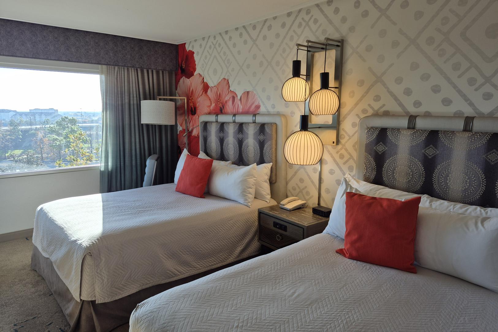 Ik wil niet beweren dat pretparken de beste hoteliers zijn. Toch levert het vaak een aanzienlijke meerwaarde om een on-site accommodatie te kiezen. Hier in Universal worden hotelgasten bijvoorbeeld verwend met handige pendelbussen en vroege toegang tot Islands of Adventure, Epic Universe of Volcano Bay. Als je genoeg dollars neertelt om in een premiumhotel te slapen, trakteert Universal je bovendien op een Express Unlimited-pasje, waarmee je in de twee ‘oude’ themaparken onbeperkt wachtrijen kan overslaan. Dat leek ons alvast een geldige reden om een kamer in Loews Royal Pacific Resort te boeken, want voorkruipprivileges vinden we wel fijn. Het exotisch ogende hotel kon ons verder ook bekoren dankzij de prachtige kamers en de droomlocatie nabij Islands of Adventure. Indien je dit allemaal iets te decadent vindt, kan je gelukkig ook terecht bij Universal’s meer budgetvriendelijke accommodaties. Wij verbleven reeds bij Universal’s Endless Summer Resort en het moderne Aventura Hotel, en ook daar viel weinig op aan te merken.