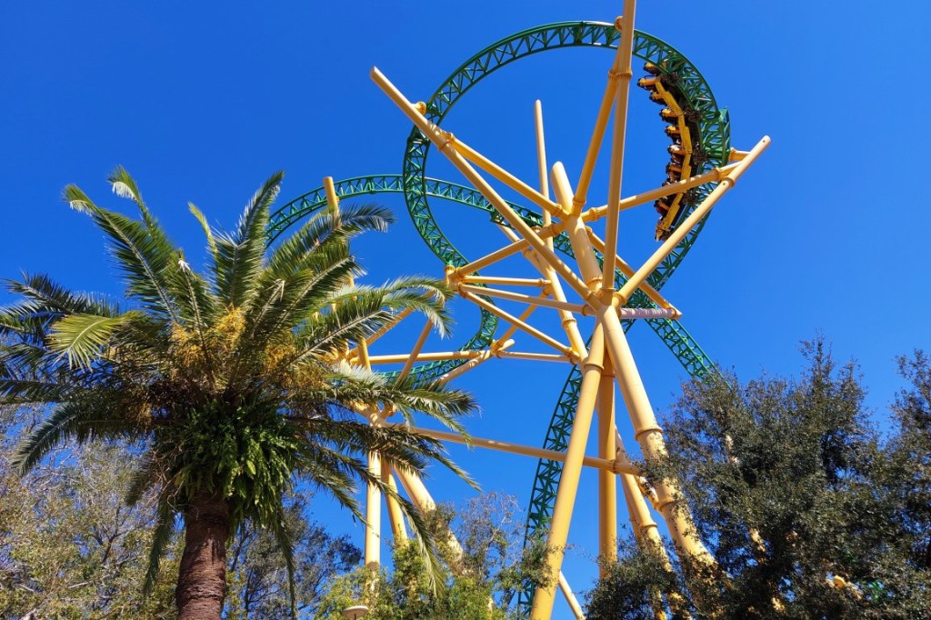 Universal and Disney are known for their efficient and fast operations. Unfortunately, Busch Gardens Tampa doesn’t perform on the same level. Despite our Quick Queue passes, we still queued 40 minutes for Montu. This was primarily due to the fact that it was only running one train. And with one departing vehicle every five to six minutes, Montu’s line moved frustratingly slow. On a brighter note: those disappointing operations didn’t affect the actual ride experience, which is still excellent. Montu features a fantastic first drop, spectacular inversions and some forceful curves. Besides, it’s still running exceptionally well after nearly 30 years of operation. And although it certainly isn’t the most stunning Egyptian-themed inverted coaster on Earth, a recent paint job made Montu shine like never before.
