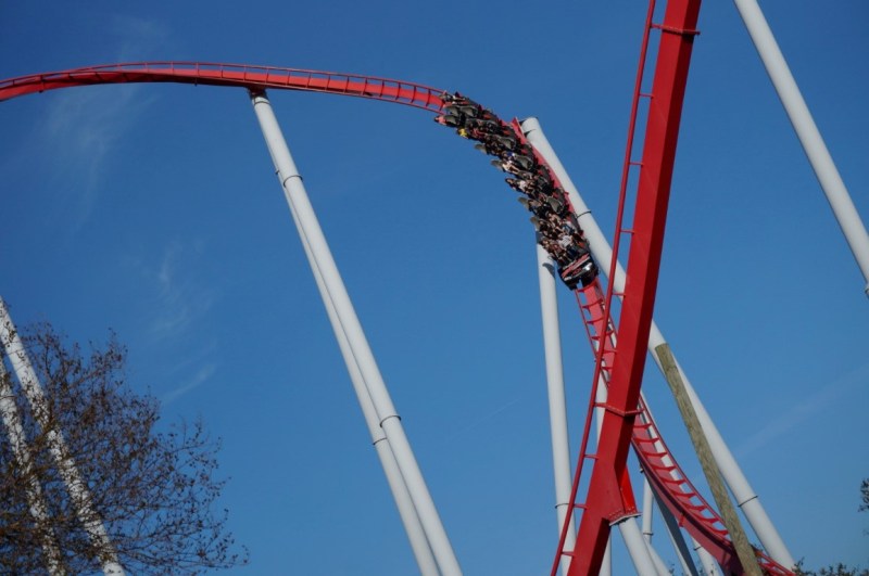 People sometimes ask me why I travel to theme parks in the USA while there are tons of parks in Europe. The answer is simple: because American parks offer rides that can’t be found in Europe. Nighthawk is one of those unique coasters that makes my heart skip a beat. This is a so called Flying Dutchman, the flying roller coaster which was developed by Vekoma. In fact, Nighthawk was the very first of its kind: the ride opened in an amusement park near San Francisco, but it was later moved to Carowinds. The ride itself evoked mixed feelings. On the one hand, I hated the tilting trains and the slow operations. On the other hand, the flying experience was at least as good as the one on B&M Flying Coasters. The first turnaround is awesome and the vertical looping offers a bizarre feeling. Overall, Nighthawk is a decent thrill ride, but it wasn’t as breathtaking as I hoped.